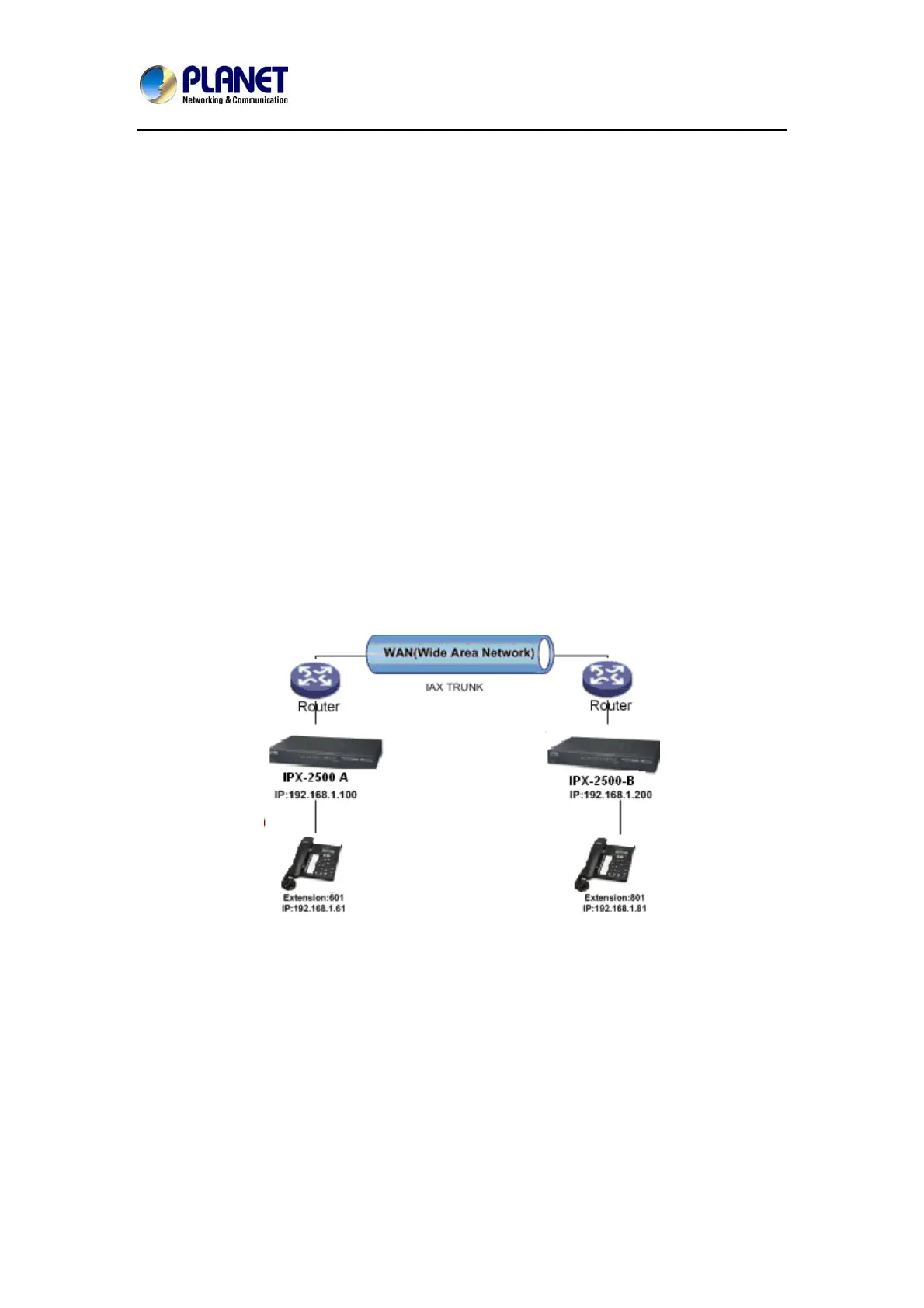7. All extensions on IPX-2500-A can call extensions on IPX-2500-B with format 8XX.