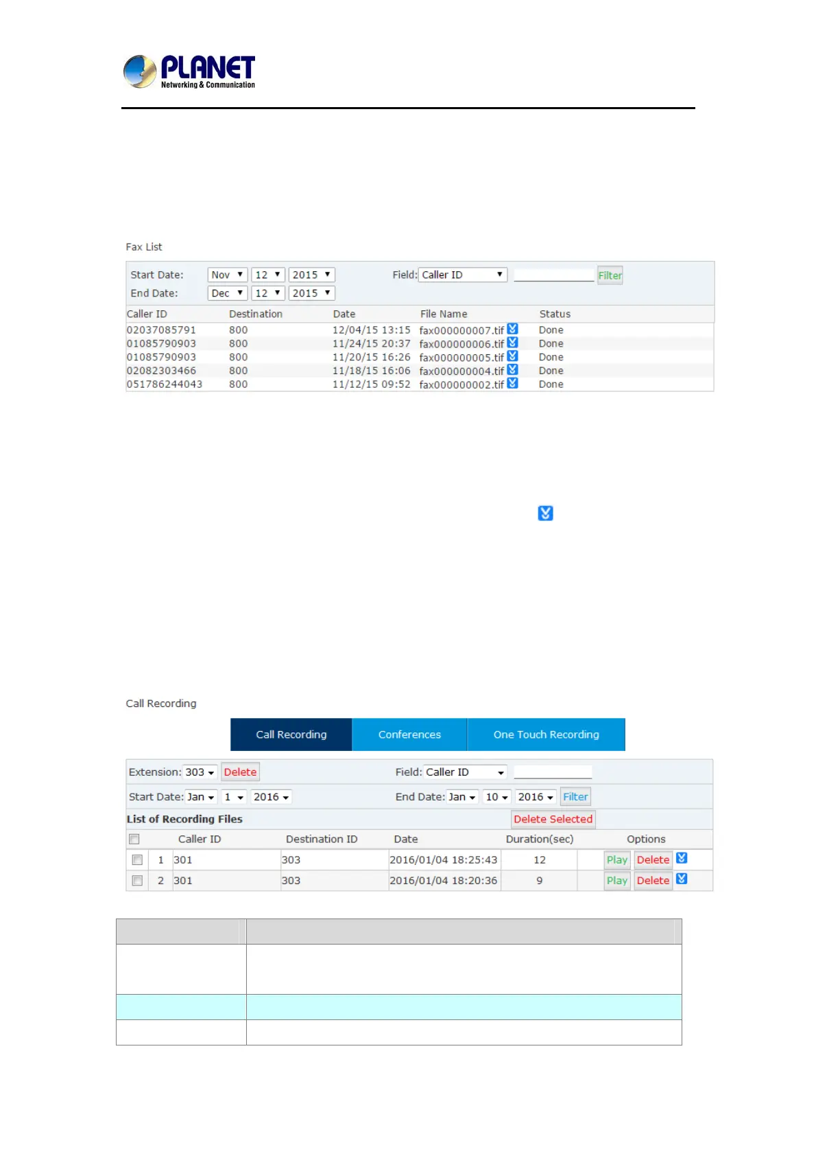 Field Filter the recordings by specifying caller ID or destination ID. For