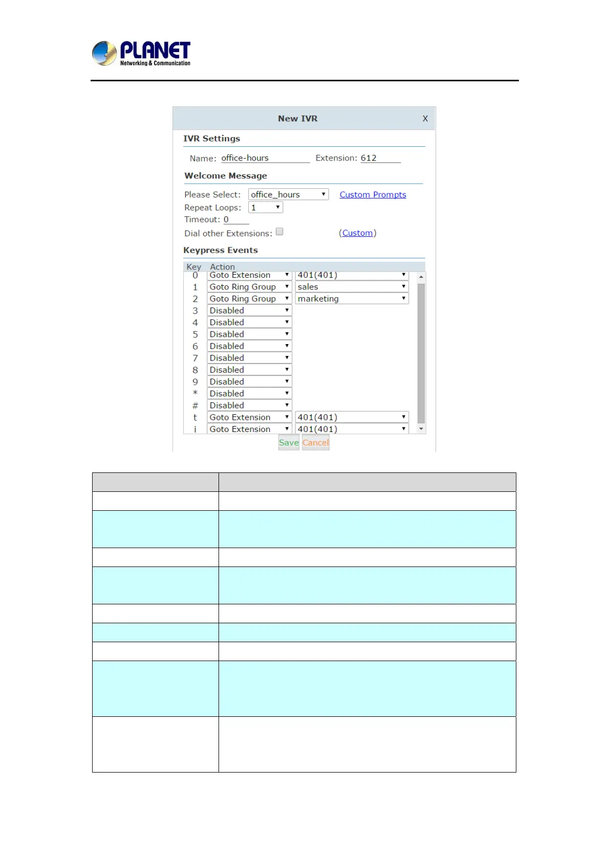 Custom By clicking “Custom” you can set dial plan for this IVR menu.
