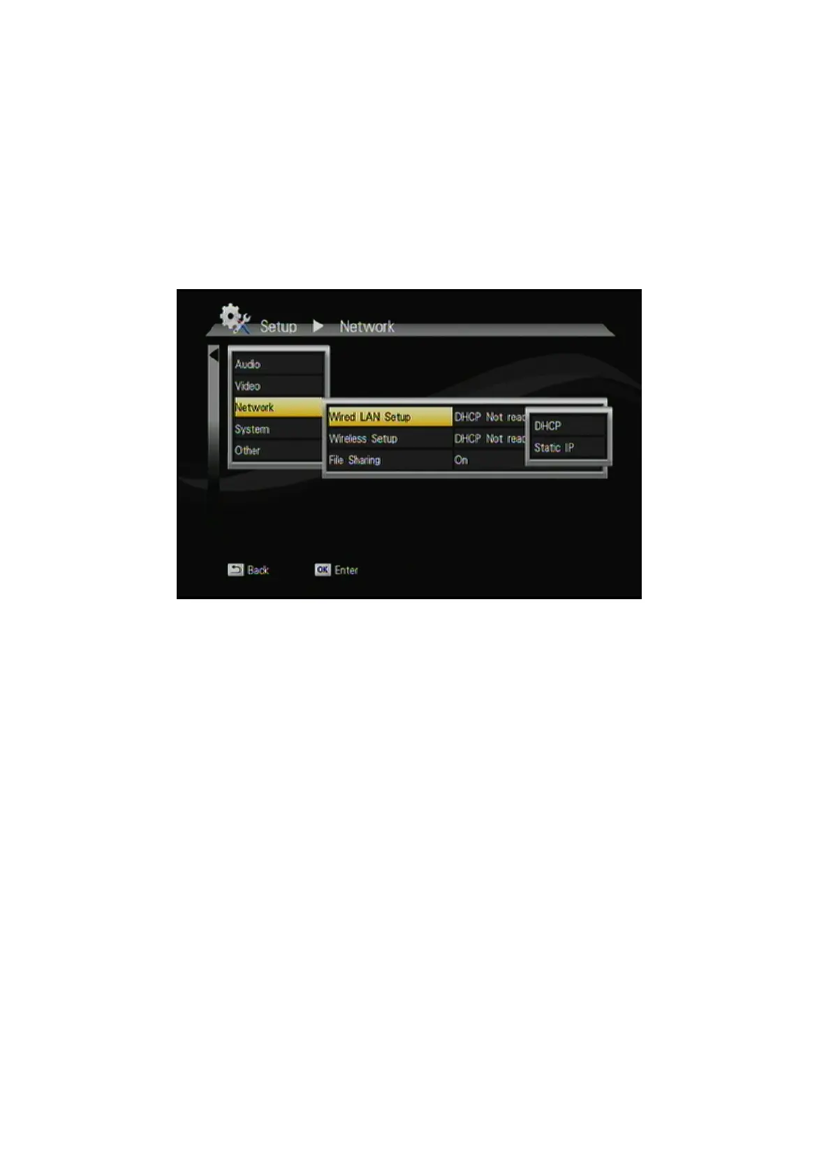 (under Setup> Network >Wired) and set up various parameters manually.