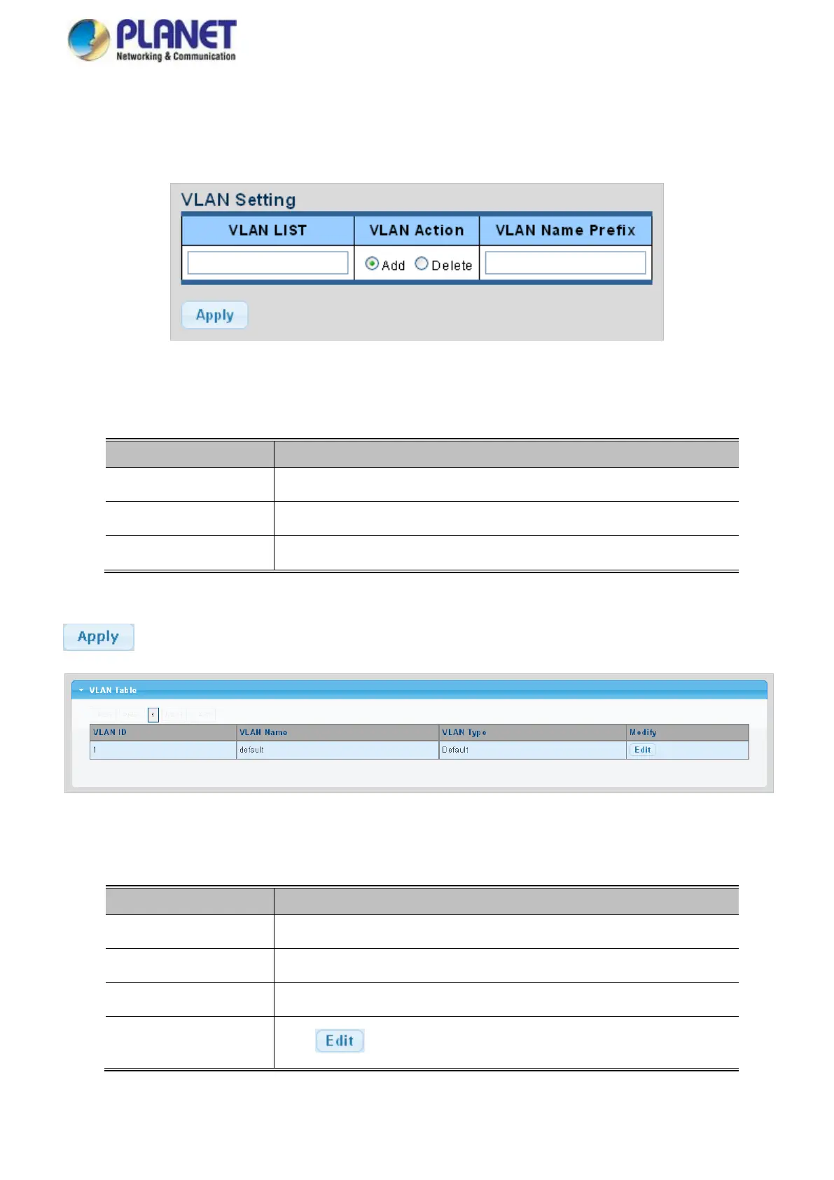 This column allows users to add or delete VLAN s.