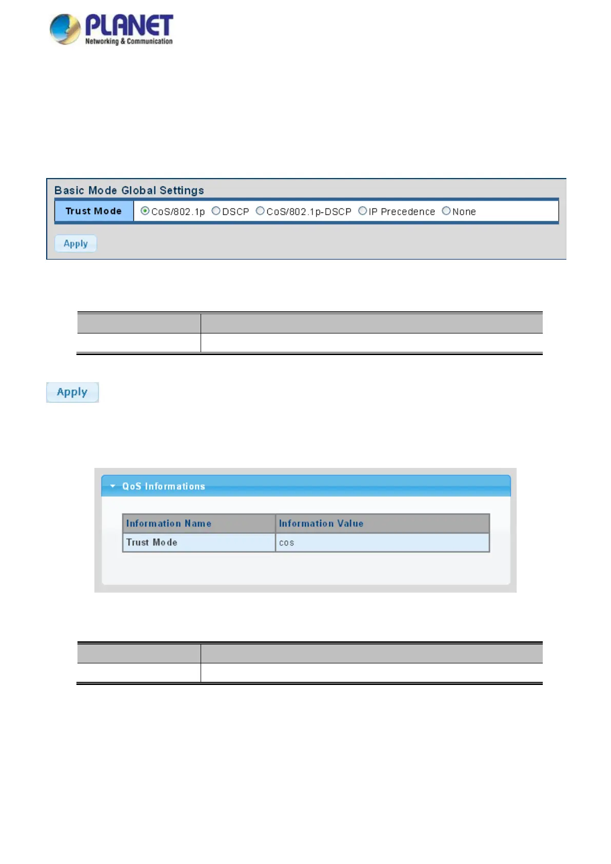 Planet IXT-900-1X1UP - Qos Basic Mode; Global Settings