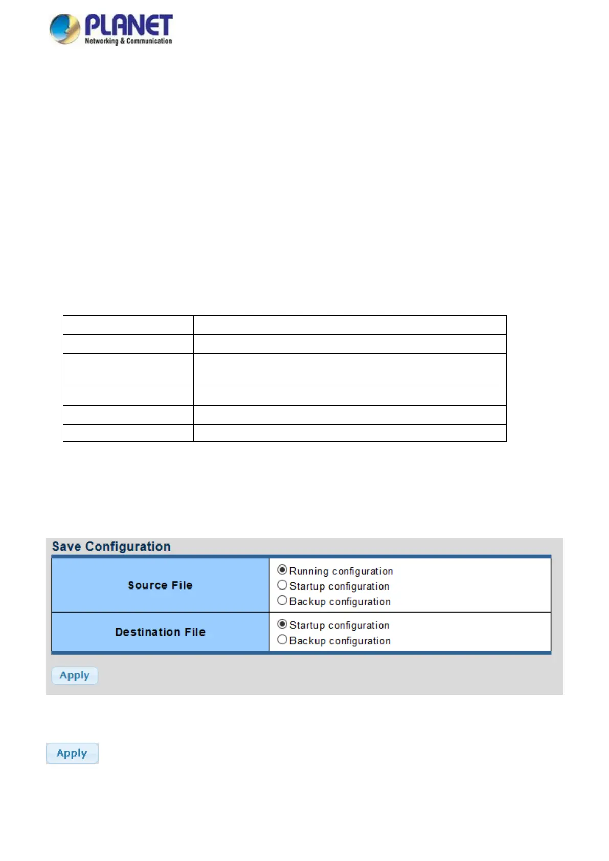 You can save the configuration of the switch on this page.