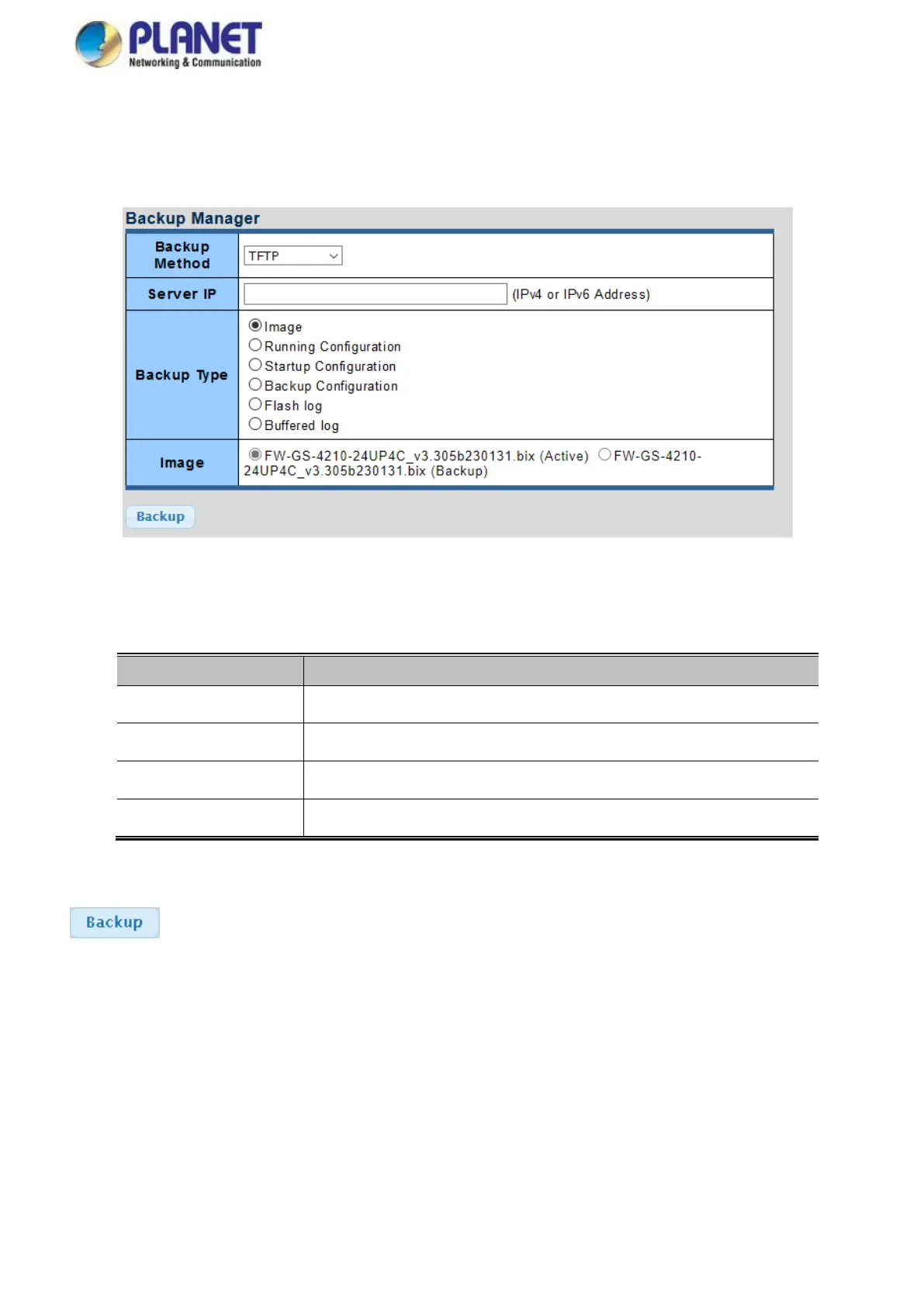 Planet IXT-900-1X1UP - Backup Manager
