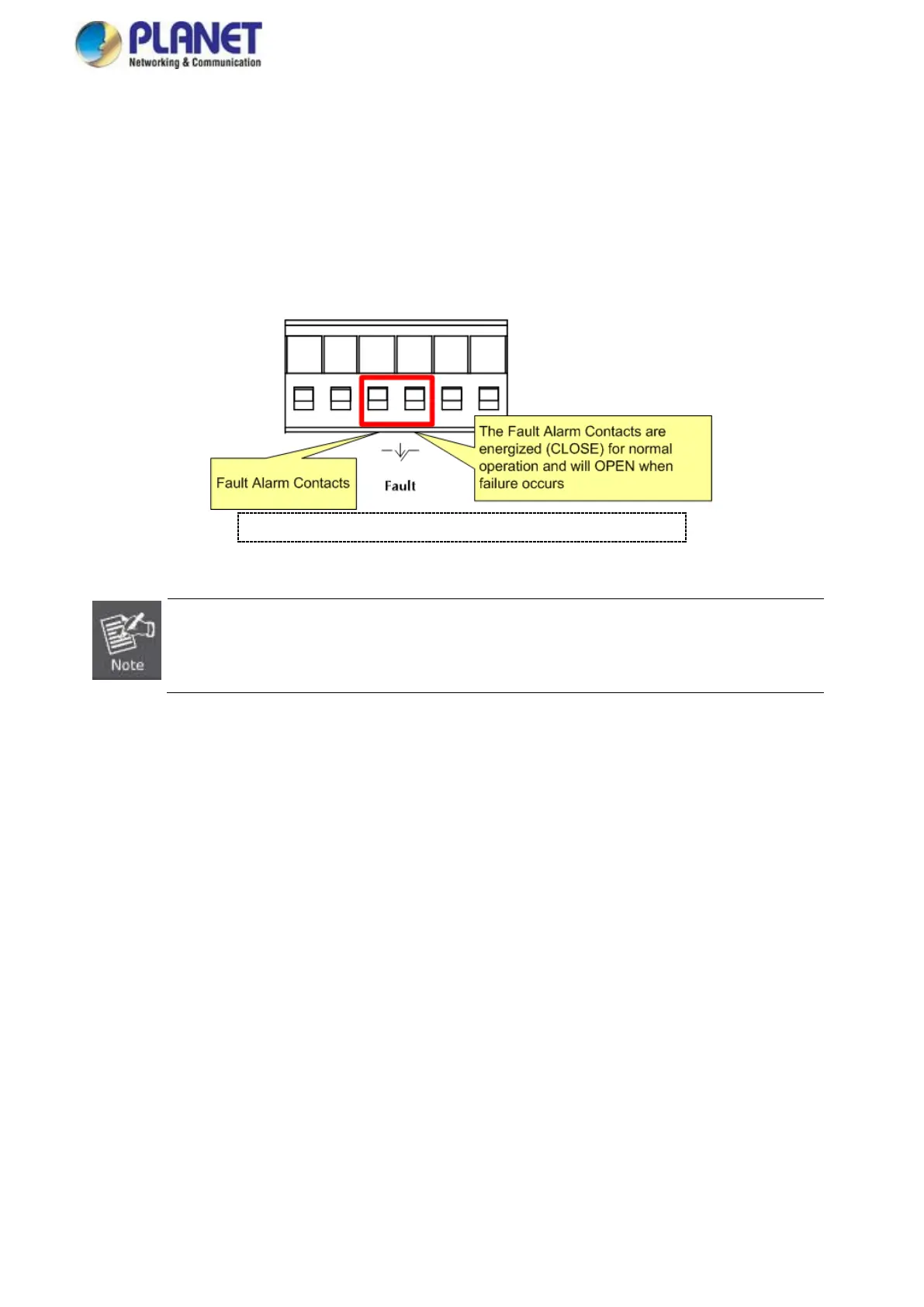The fault alarm contacts are in the middle (3 & 4) of the terminal block connector as the picture shows below. Inserting the wires,