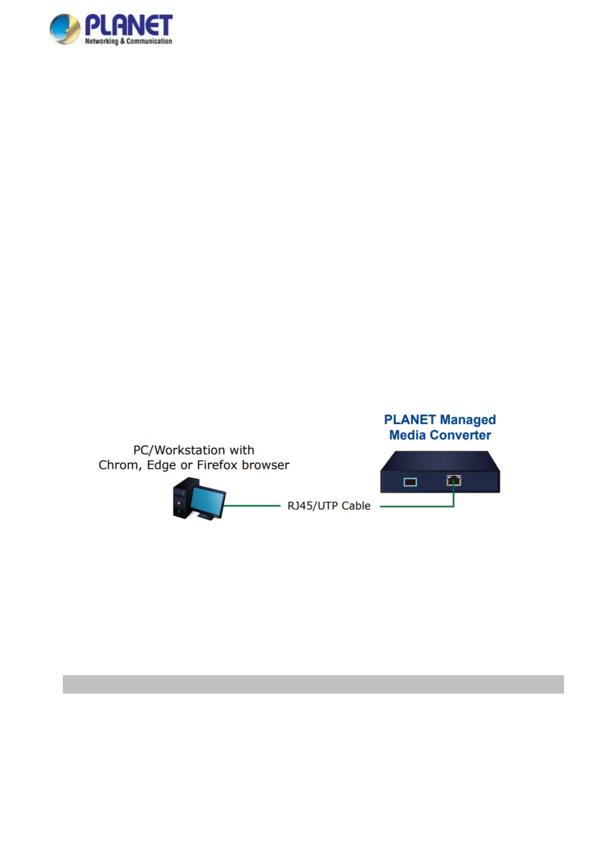 The Managed Media Converter can be configured through an Ethernet connection, making sure the manager PC must be set to