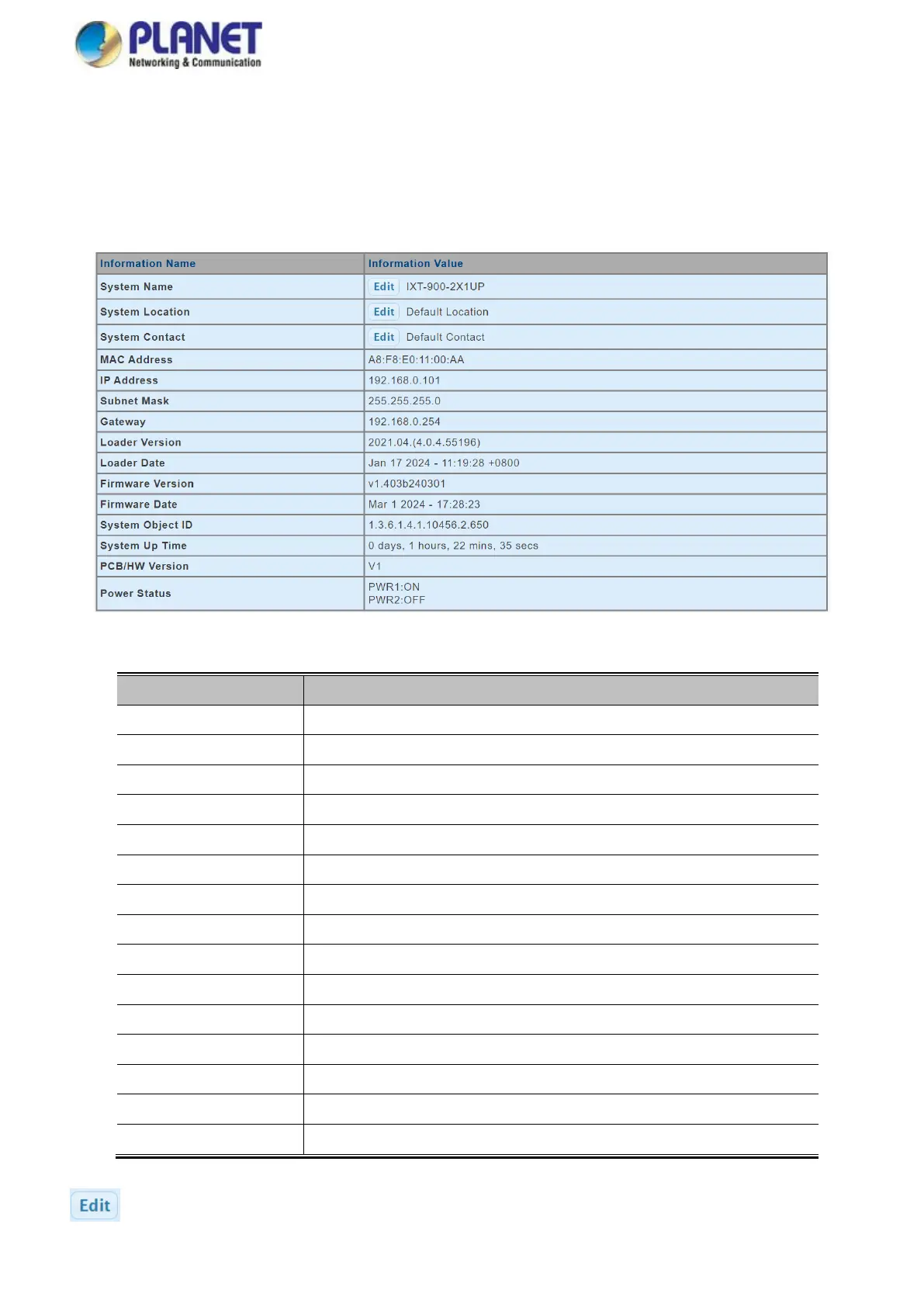 identify the hardware MAC address, software version and system uptime. The screens are shown in Figure 4-2-1 and Figure