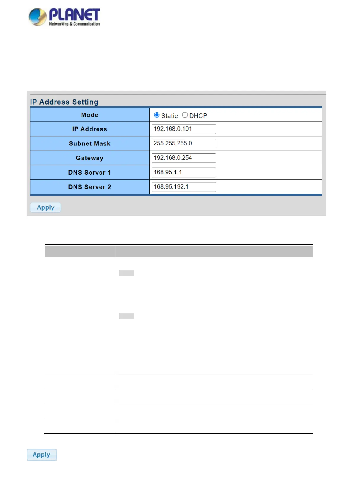 Figure 4-2-2 IP Address Setting Screenshot