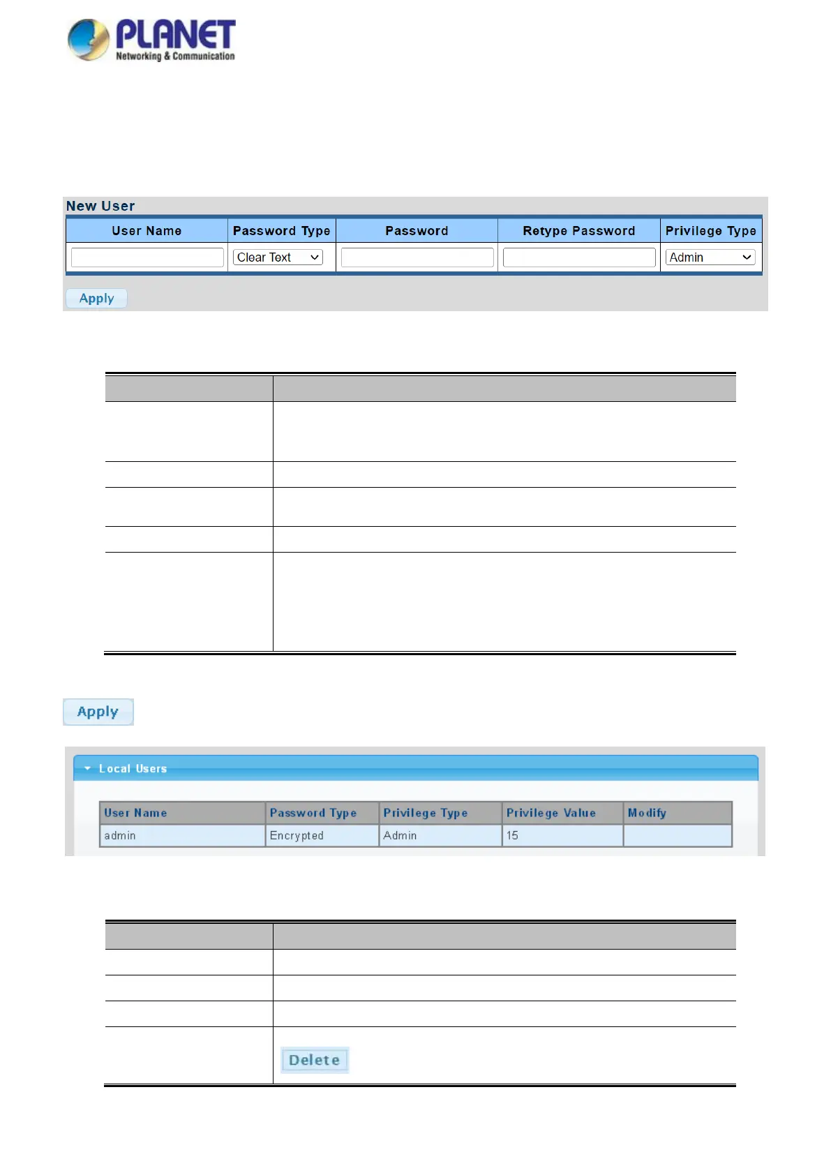 login Web interface with a new user name and password; the screens are shown in Figure 4-2-6 and Figure 4-2-7.