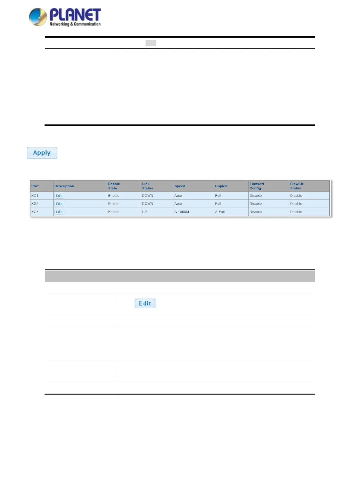 result of the last Auto-Negotiation. Check the configured column to use flow