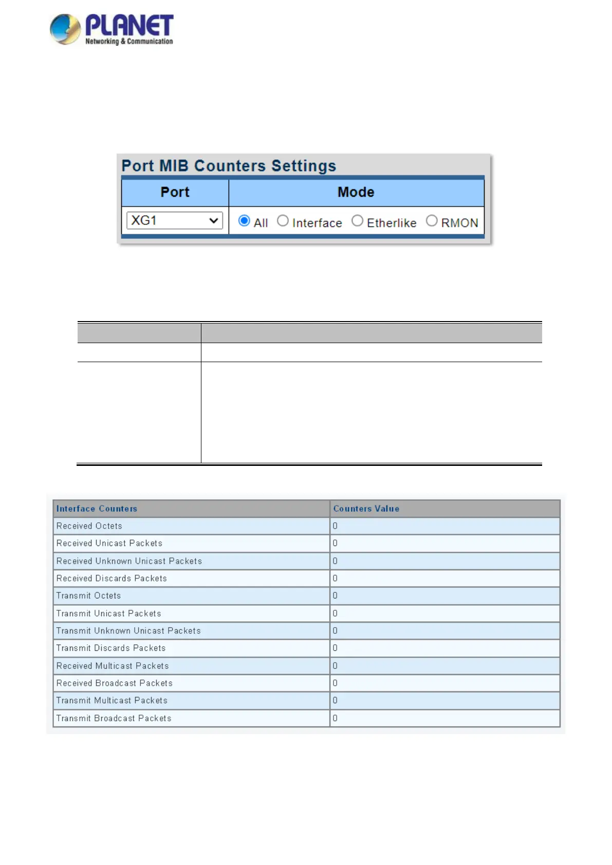Figure 4-3-3 Port MIB Counters Screenshot