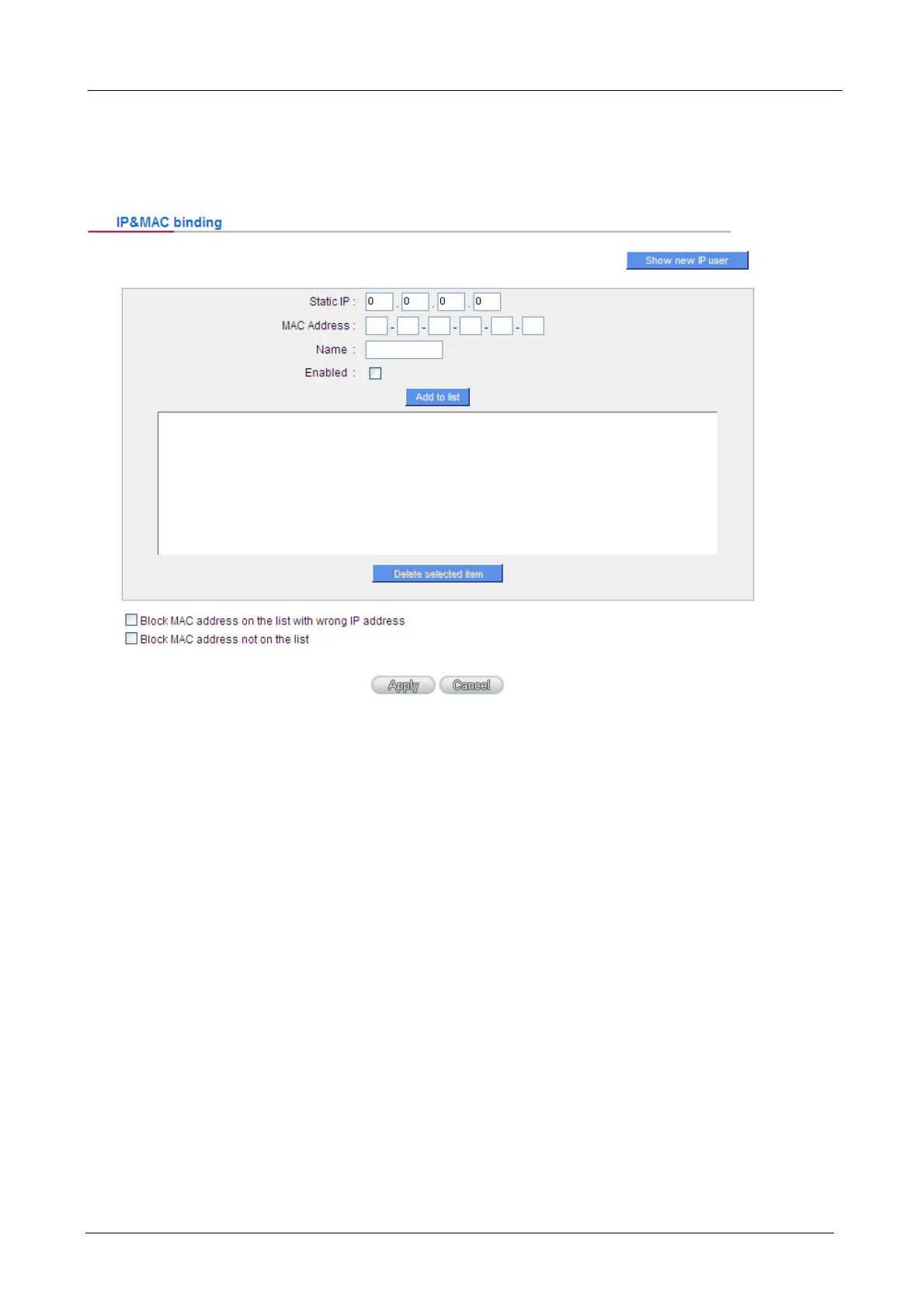 Administrators can apply IP & MAC Binding function to make sure that users can not add extra PCs for