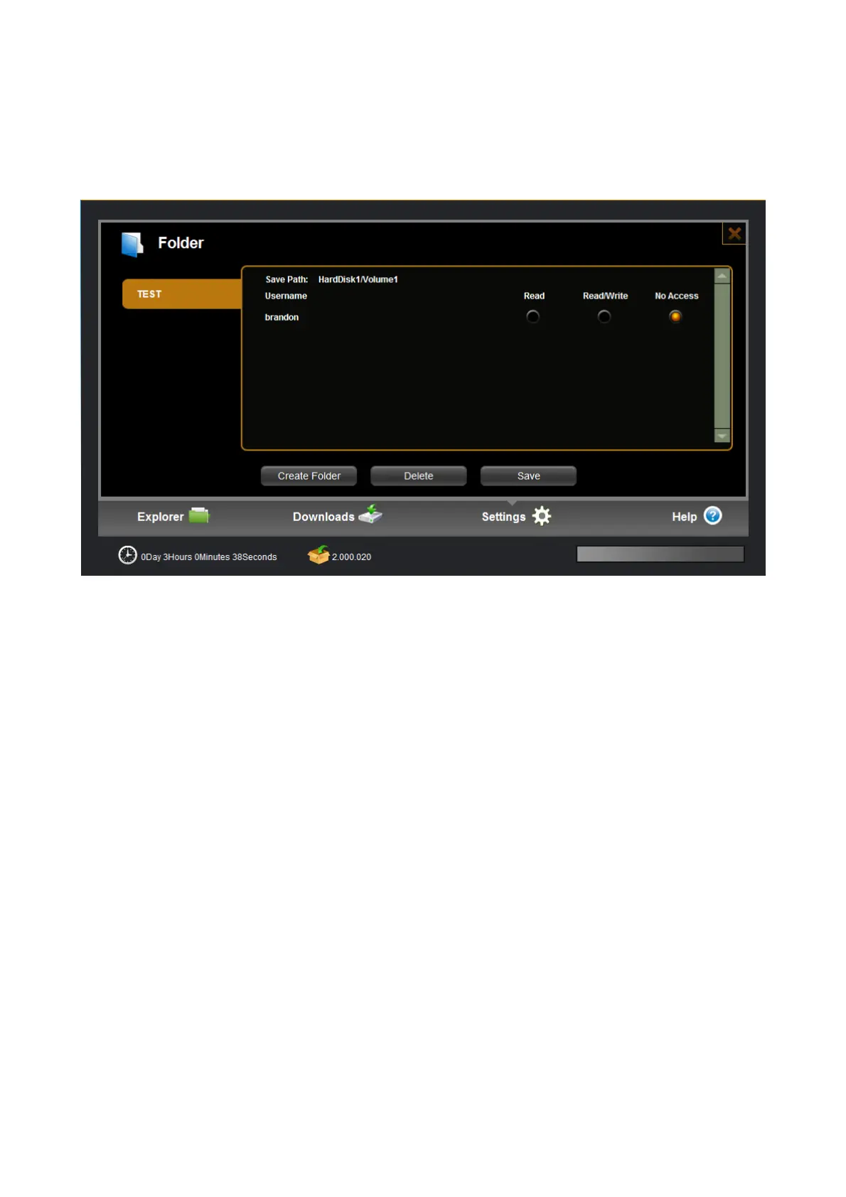 There are “Read”, “Read/Write” and “No Access” option for access privilege setting. The default setting is