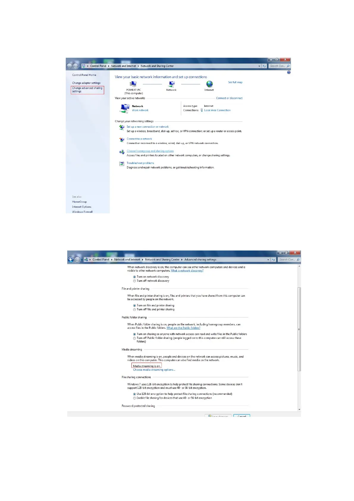 Click the option "Change advanced sharing settings" on the left side of the interface.