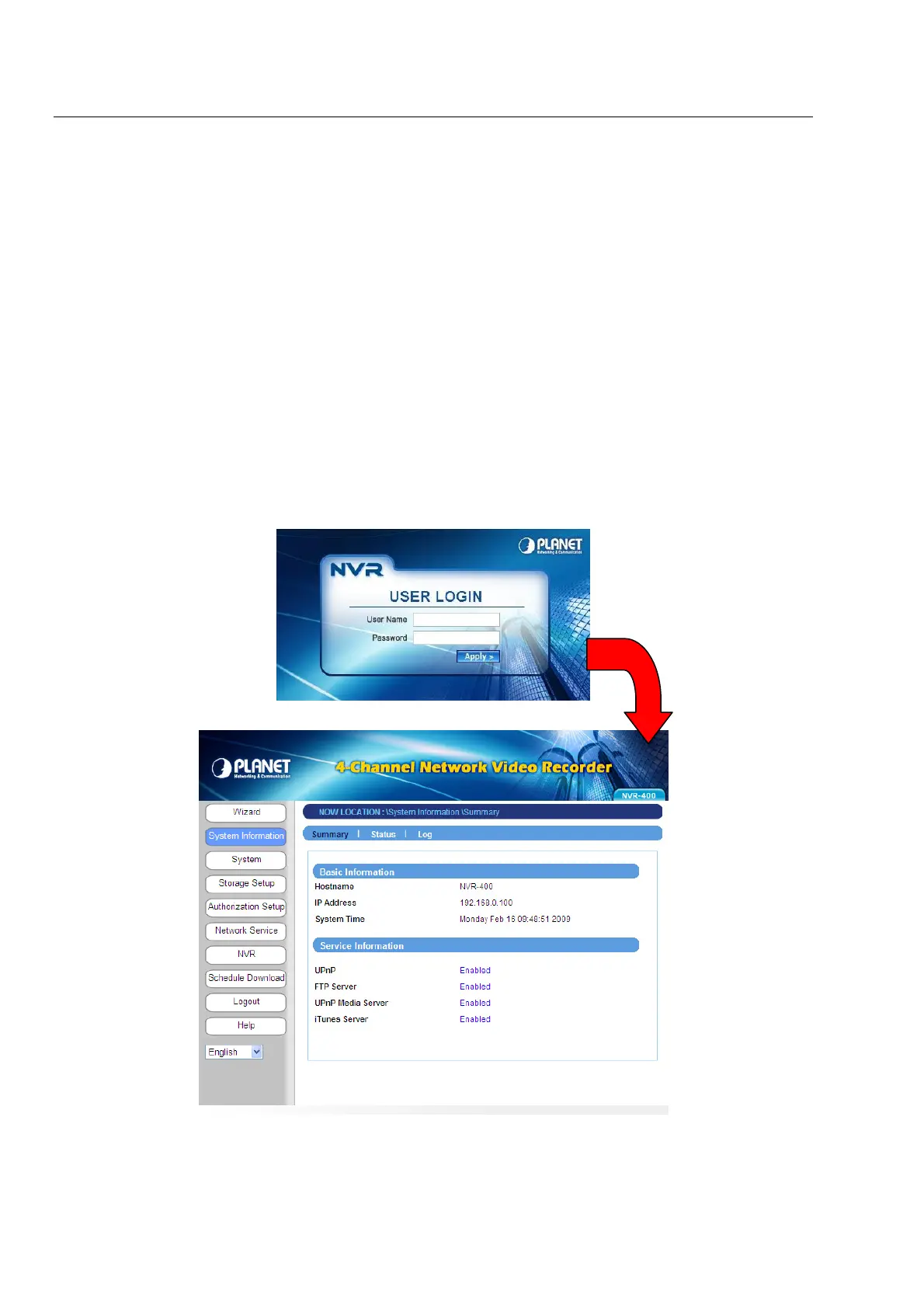 The Web management allows you to access and manage the Network Video Recorder