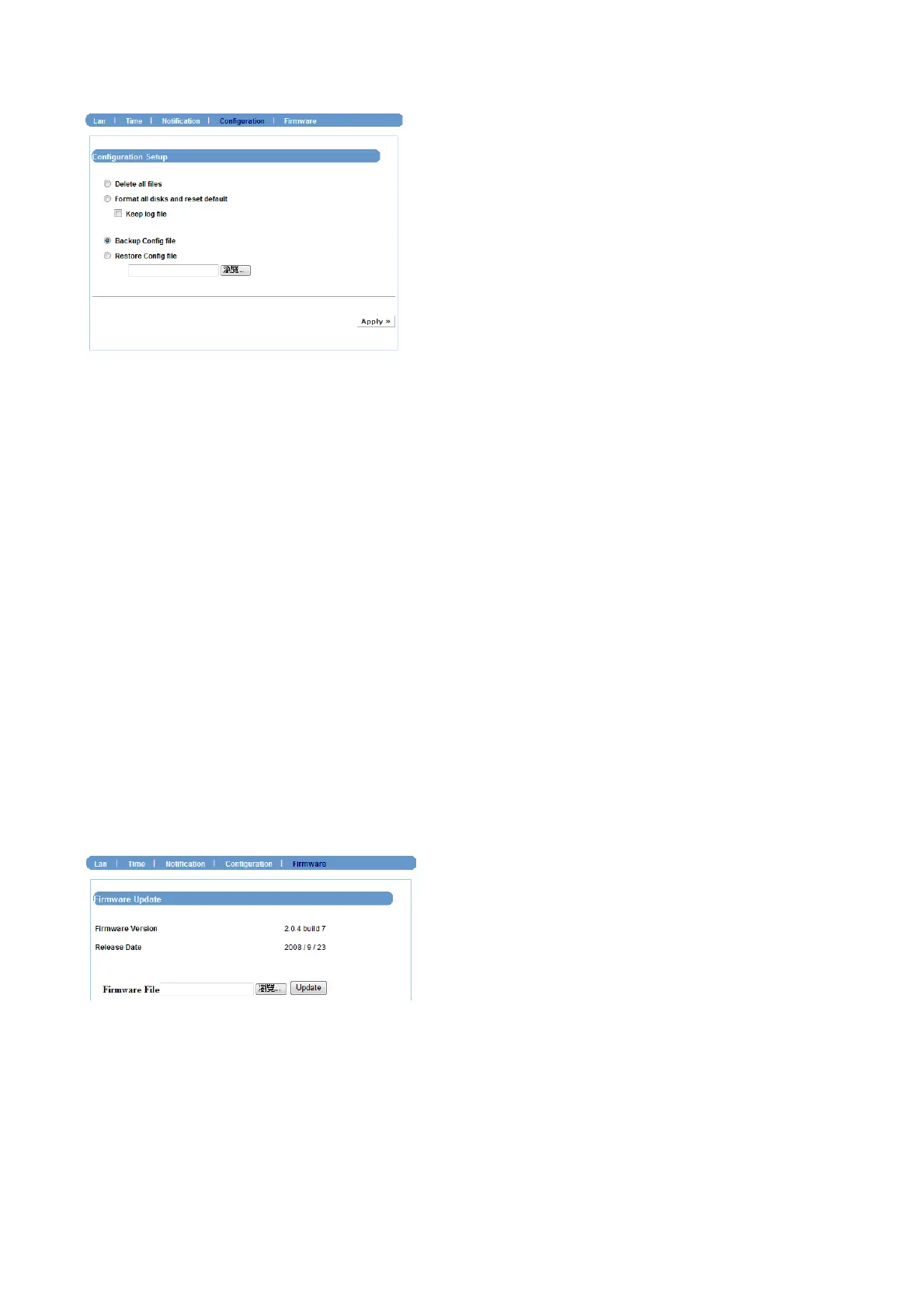 This sub-menu displays the firmware version of the device. In addition, you can upgrade