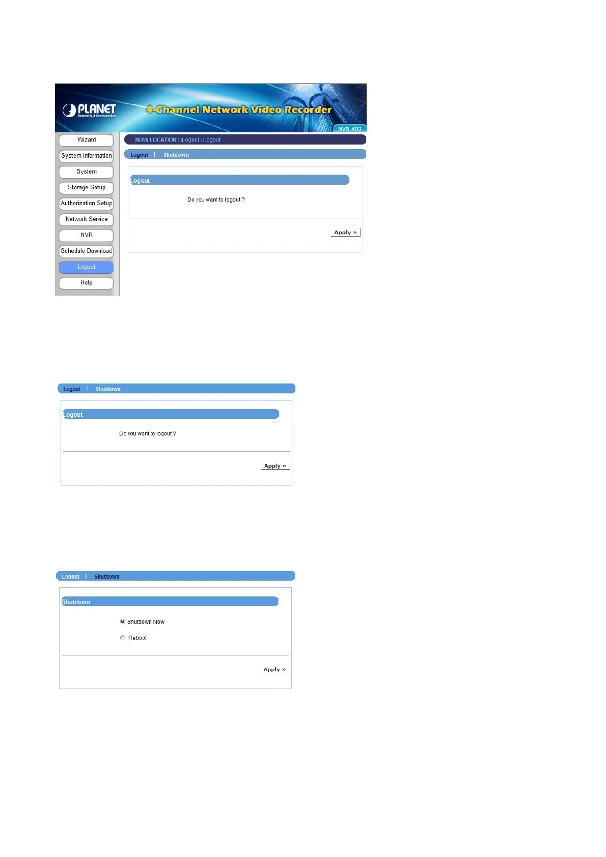 From this sub-menu, click Apply to exit the Web Configuration Utility and go back to the