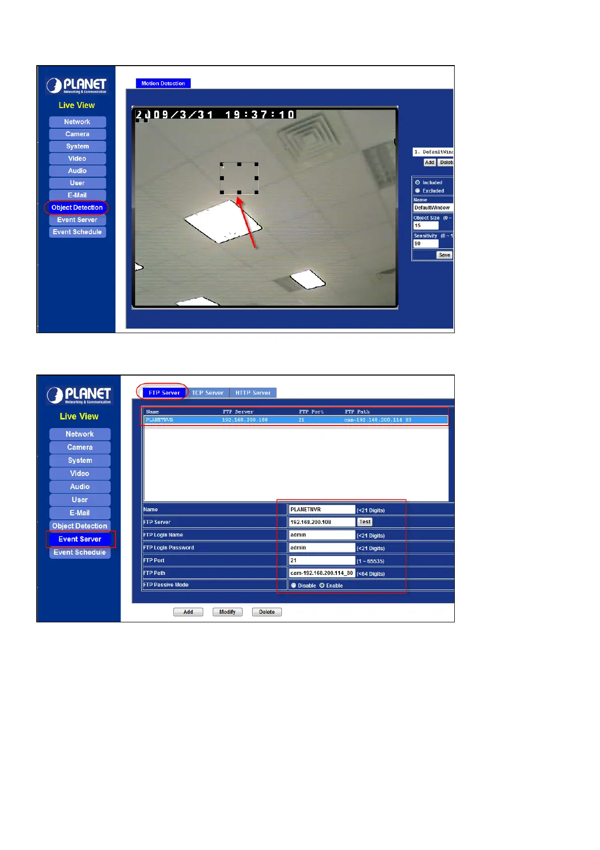 4. At Event Server page, please add NVR as the FTP Server.
