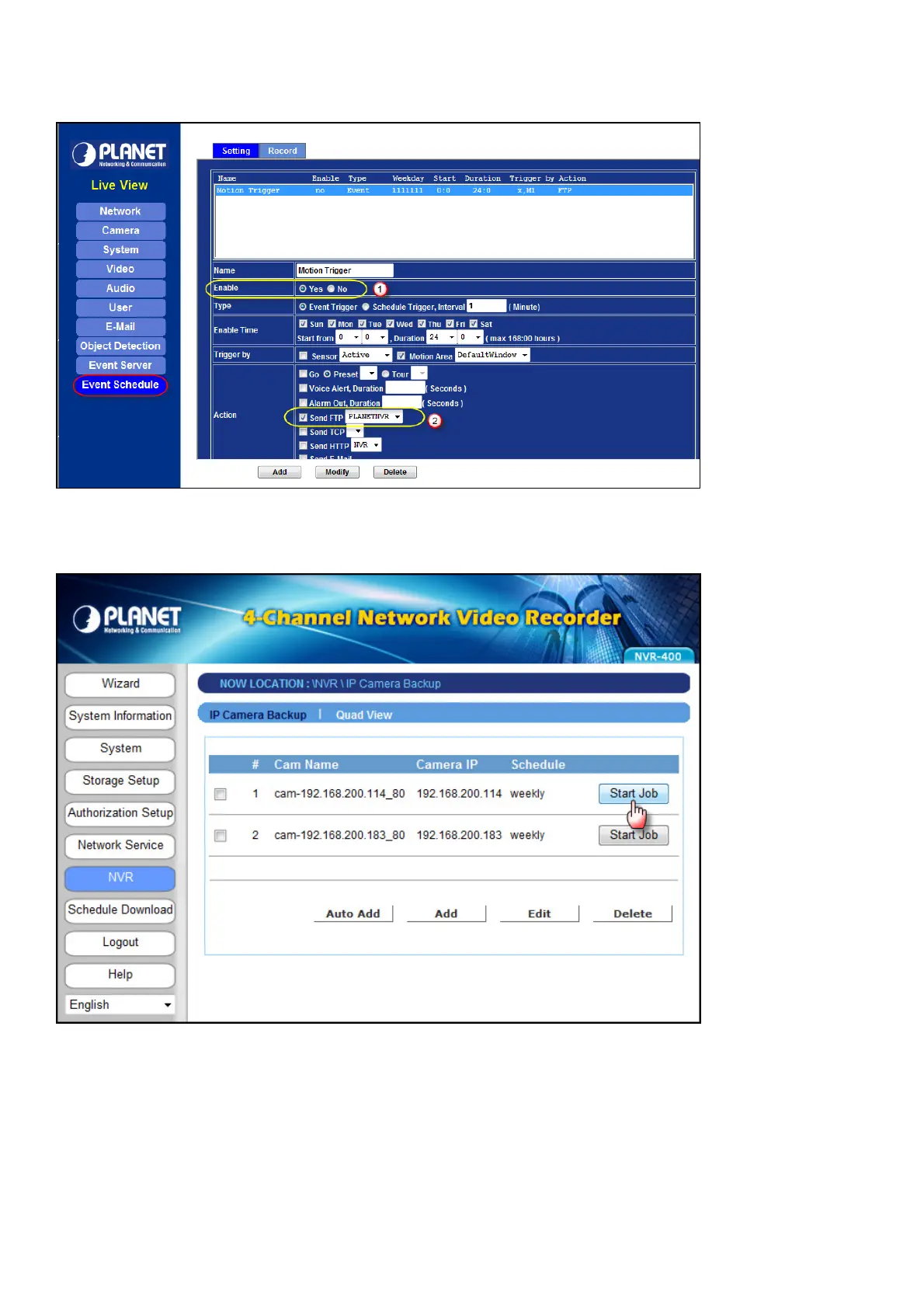 6. Go back to NVR page and click start job.