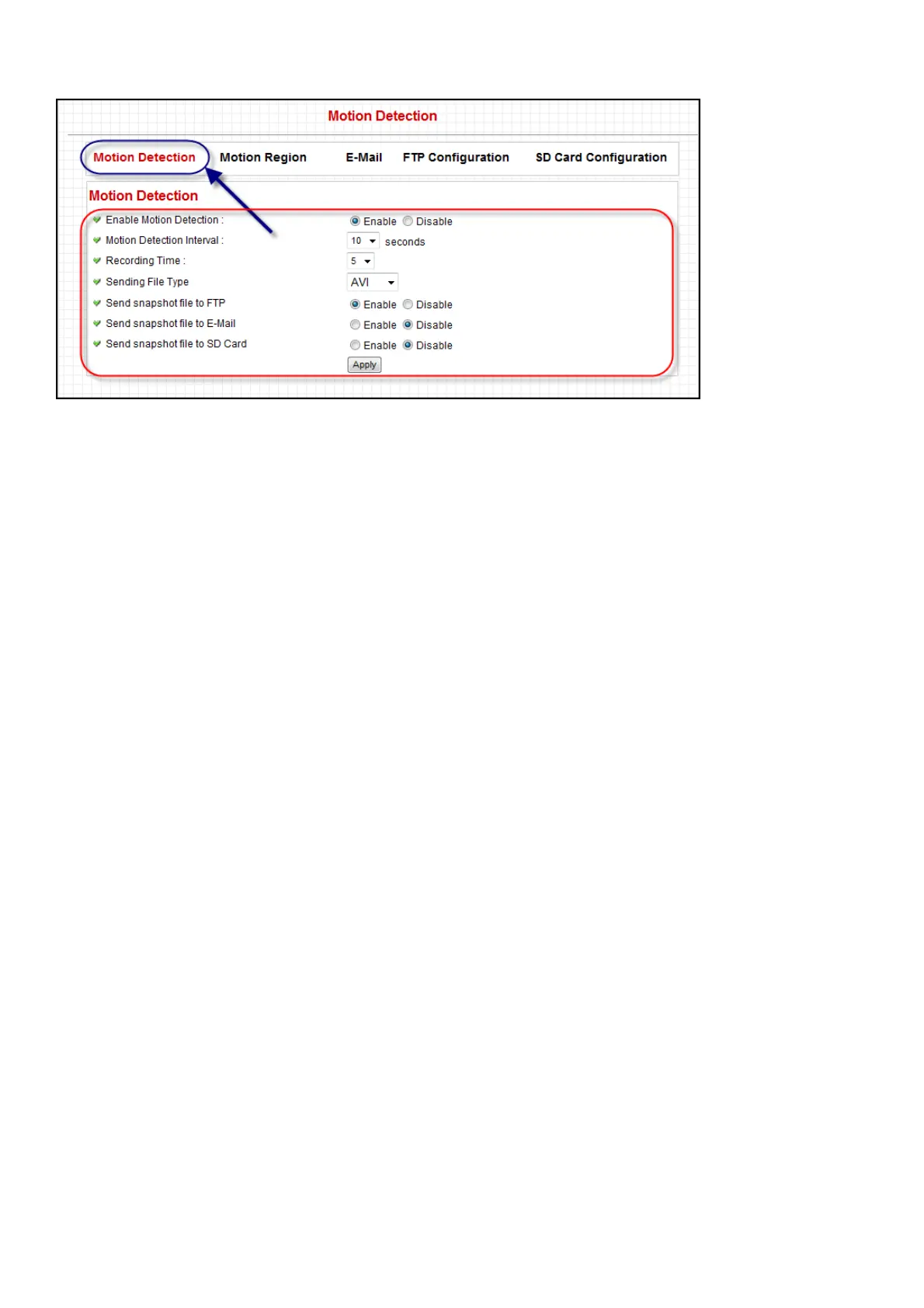6. Enable motion detection and select the item of Send snapshot file to FTP.