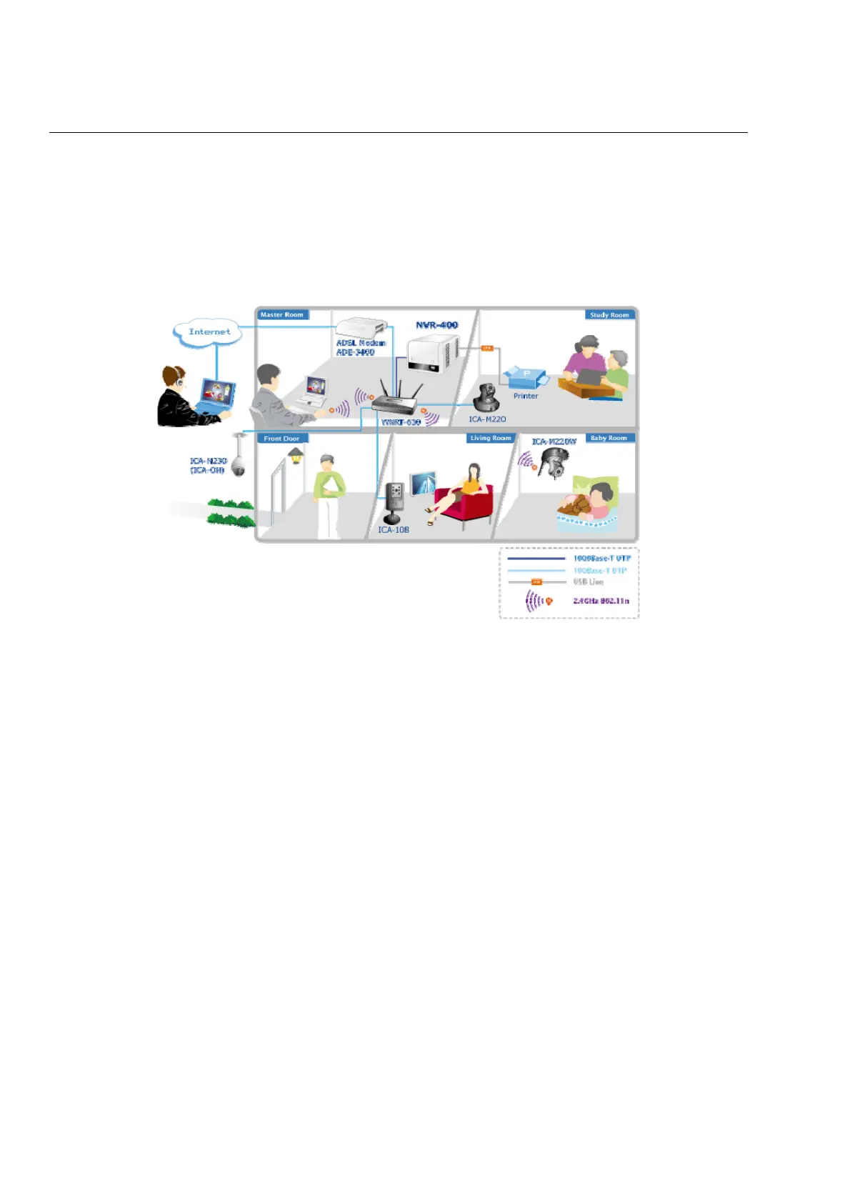 network. In the illustration below, the Network Video Recorder and four Internet cameras