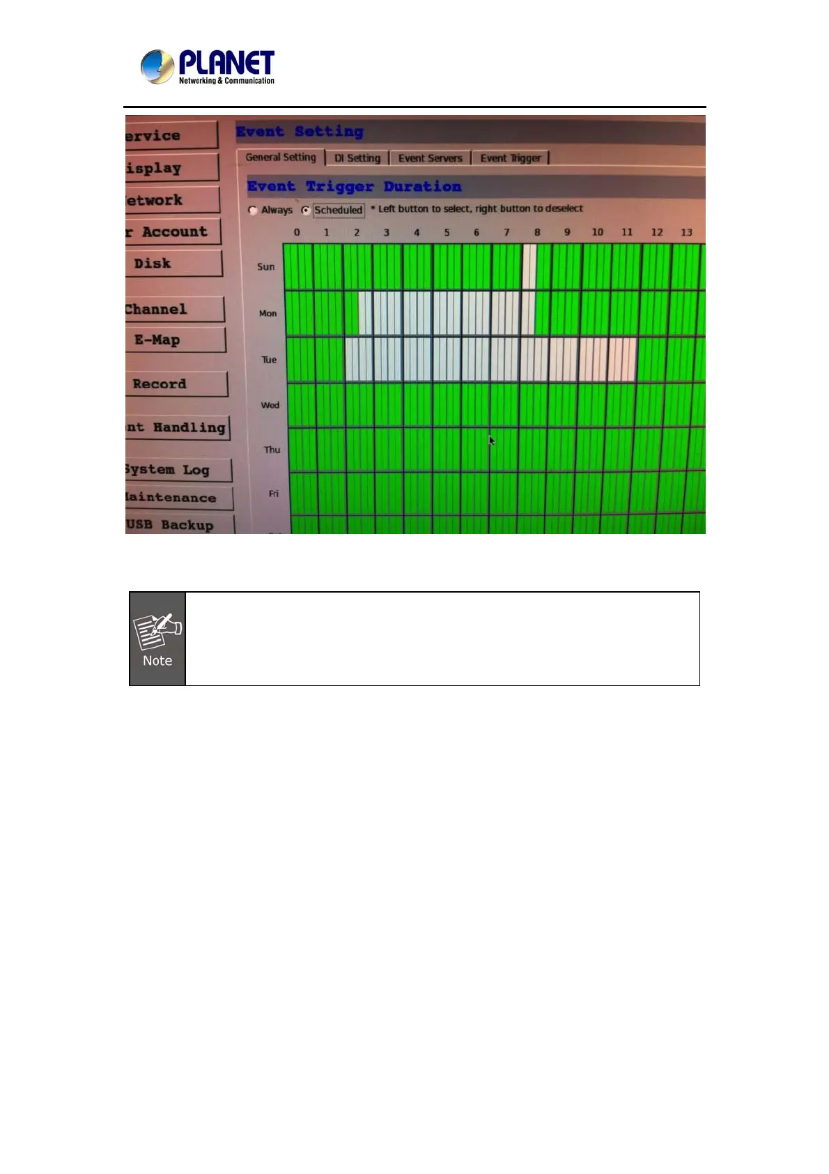 • For the “Scheduled” option, use the table to define a range of time if you would like events to