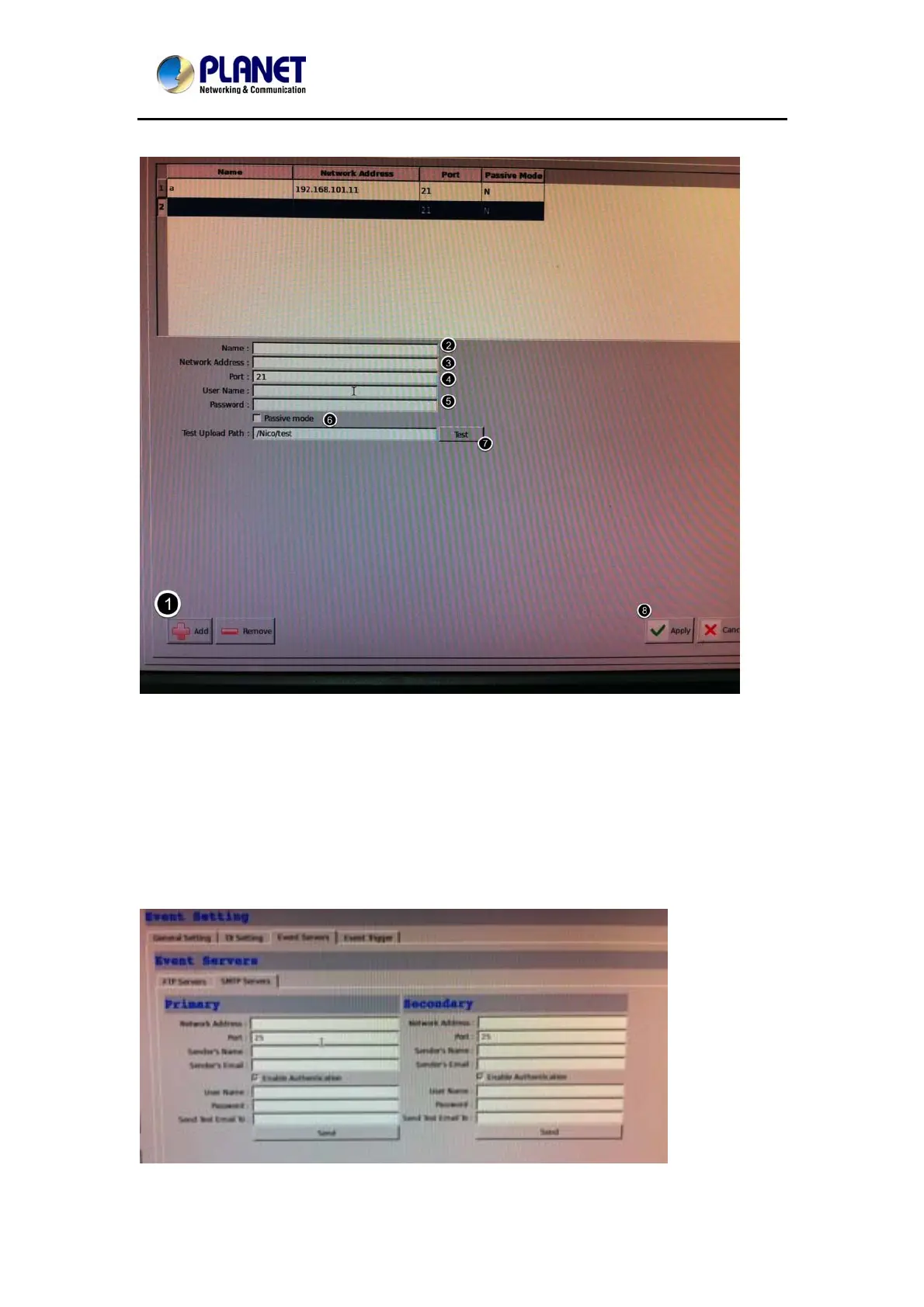 7. Click “Test” to verify if all information is entered correctly and the connection to the FTP