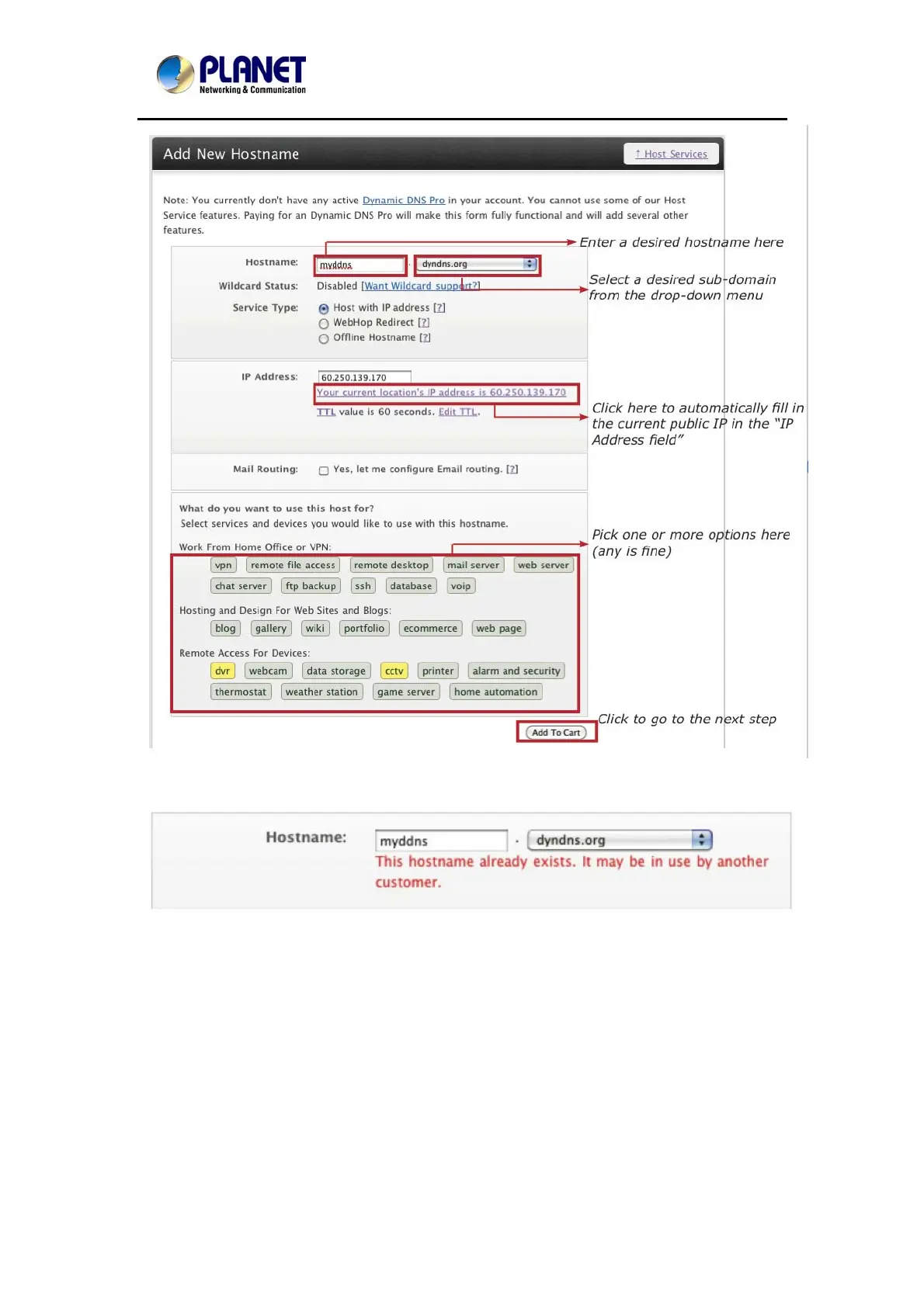 The page will check whether or not another user has used the host name you entered as soon