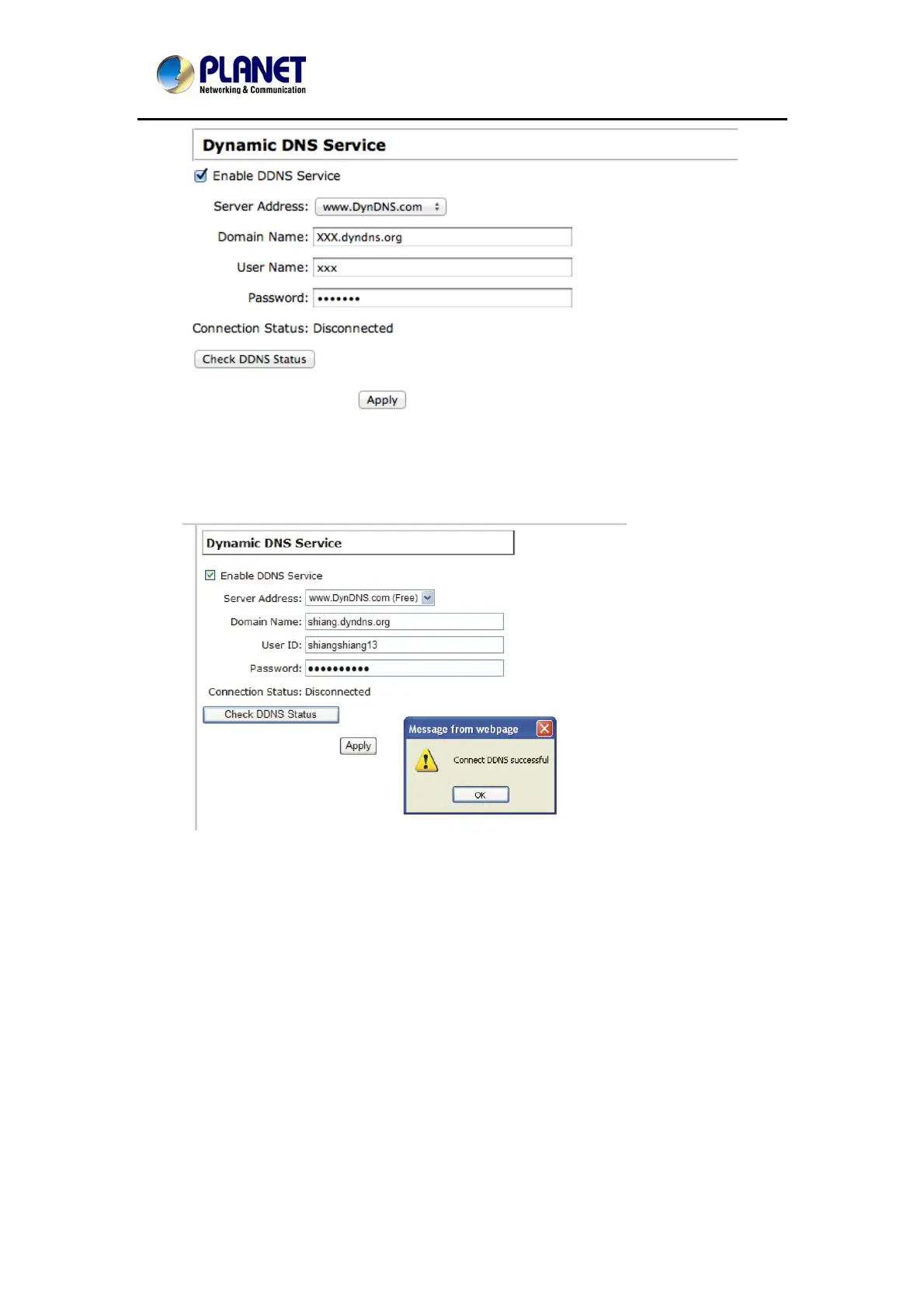 You can click the “Check DDNS Status” button to check the DynDNS service status. If you are