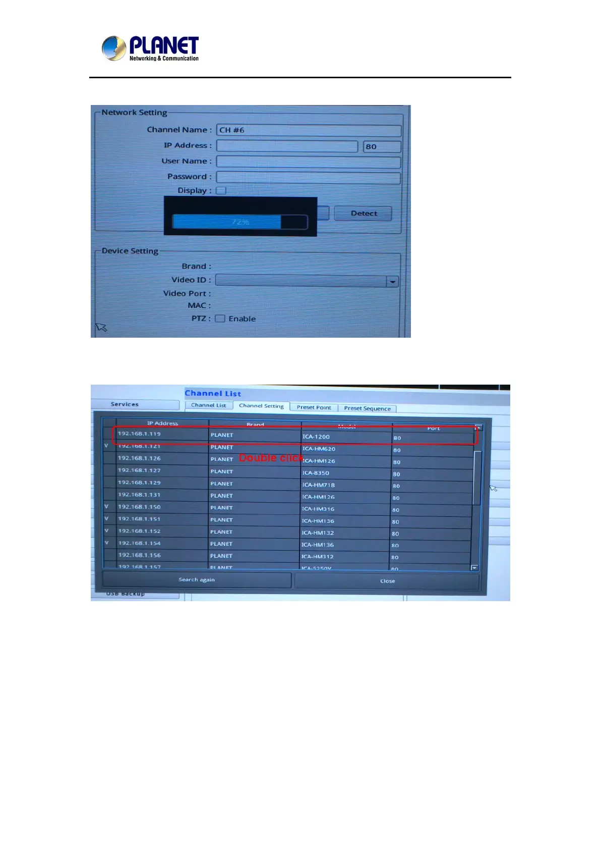 The progress will be displayed, and you will be switched to the "Channel setting" page for