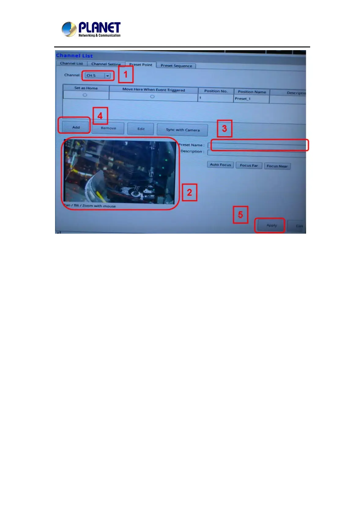 You can create up to 8 preset points for each channel if it's a PTZ-capable camera. To add a