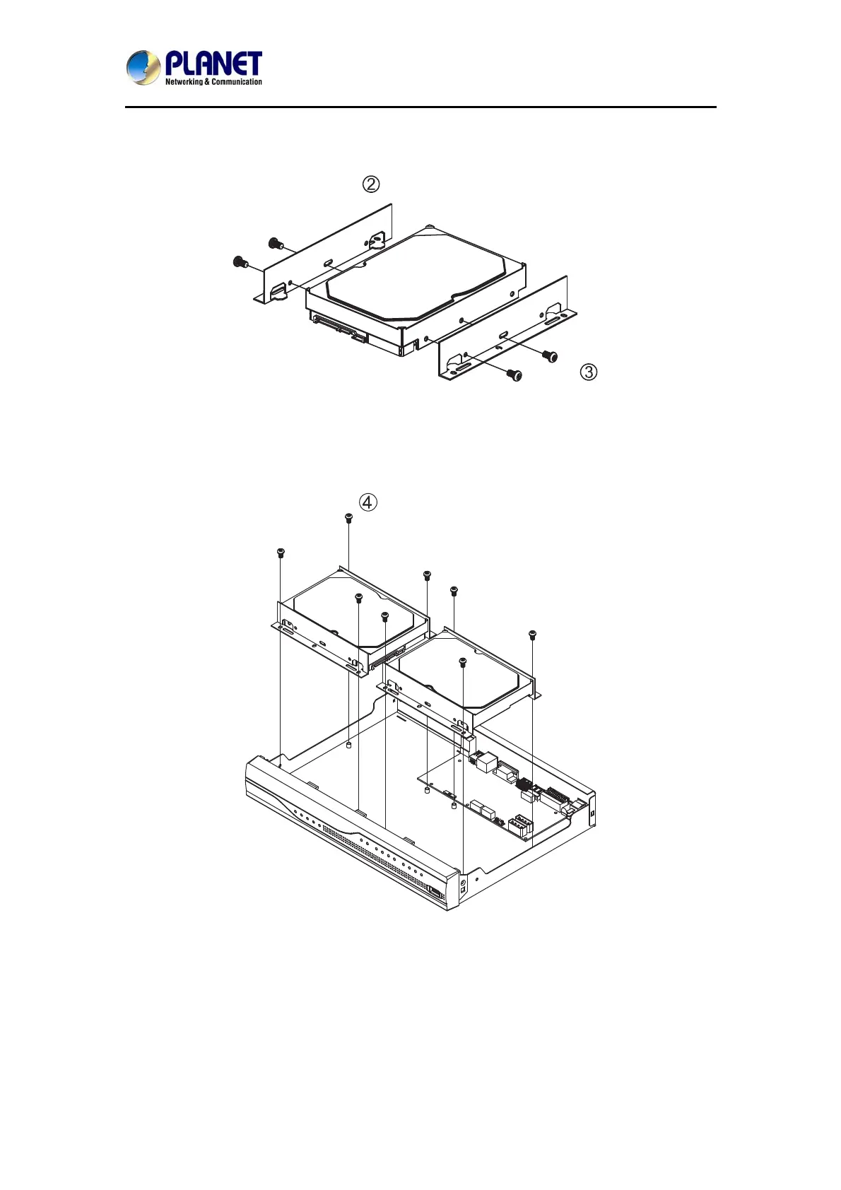 4. Install the hard disks in the case with the black screws.