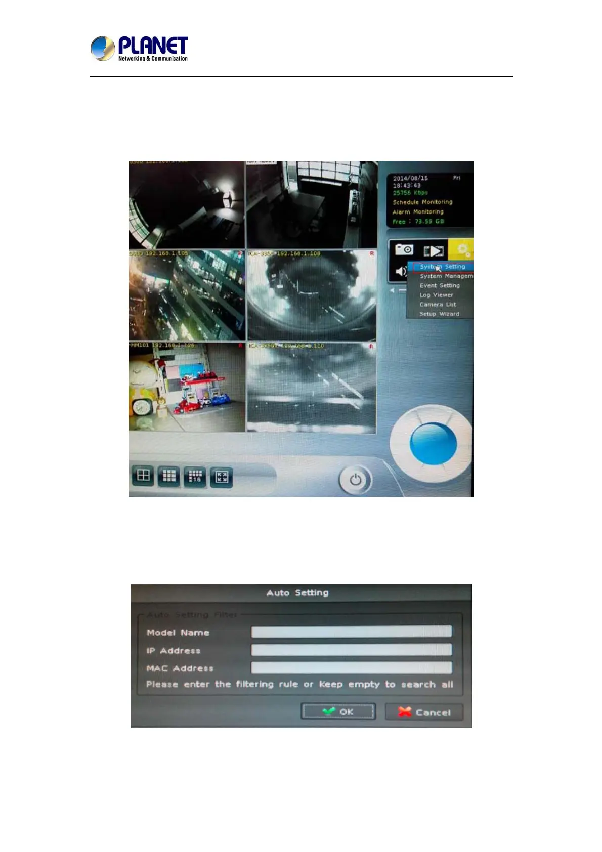 Click the “Auto Setting” button for adding cameras to system automatically, and maximum