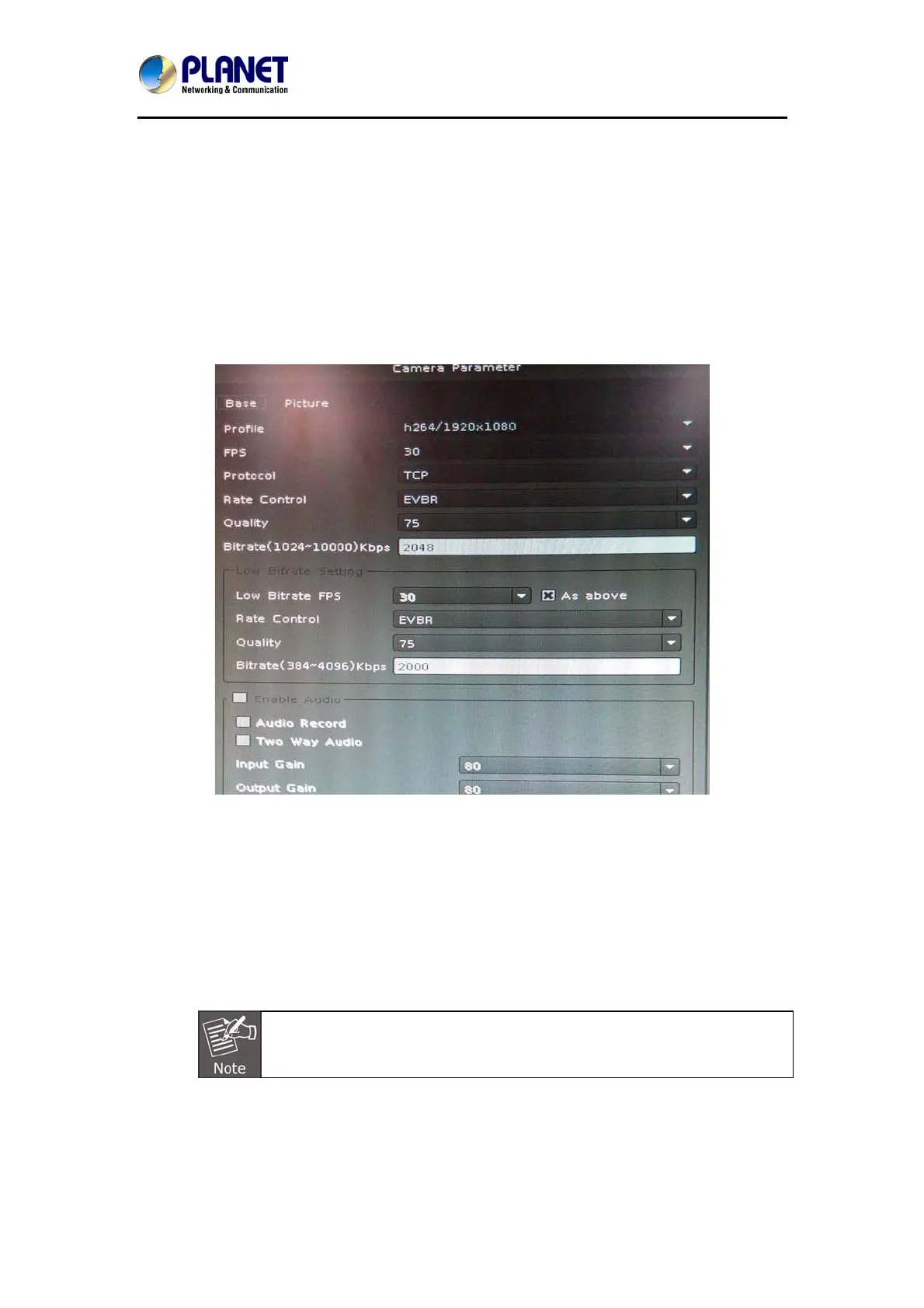 Enable Audio: You have to enable audio for two-way audio function.