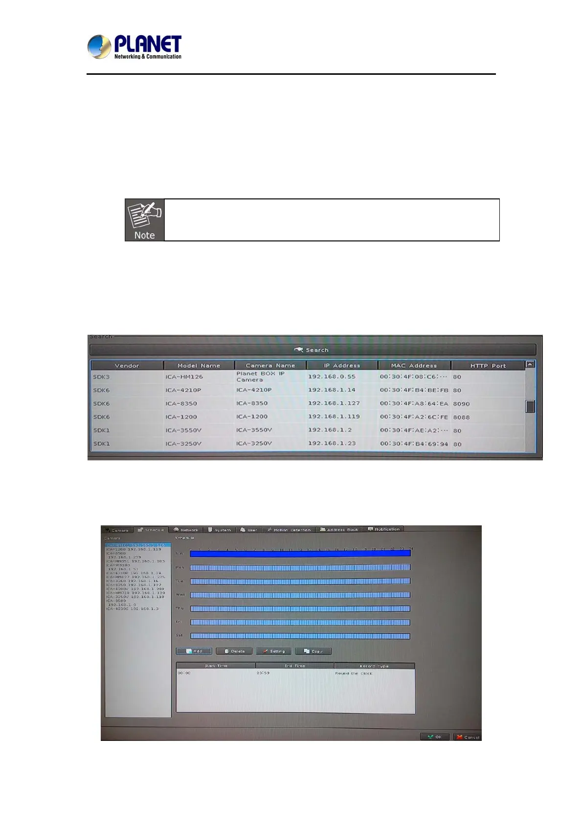 Click “Search” button and system will list all cameras that can be searched in “Search List”.