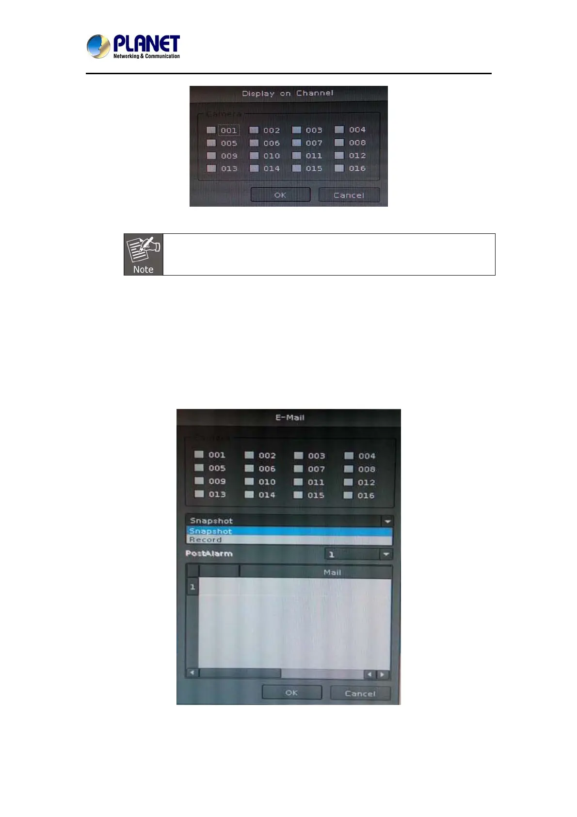 1. Select channels for snapshot or record a file when event is triggered.