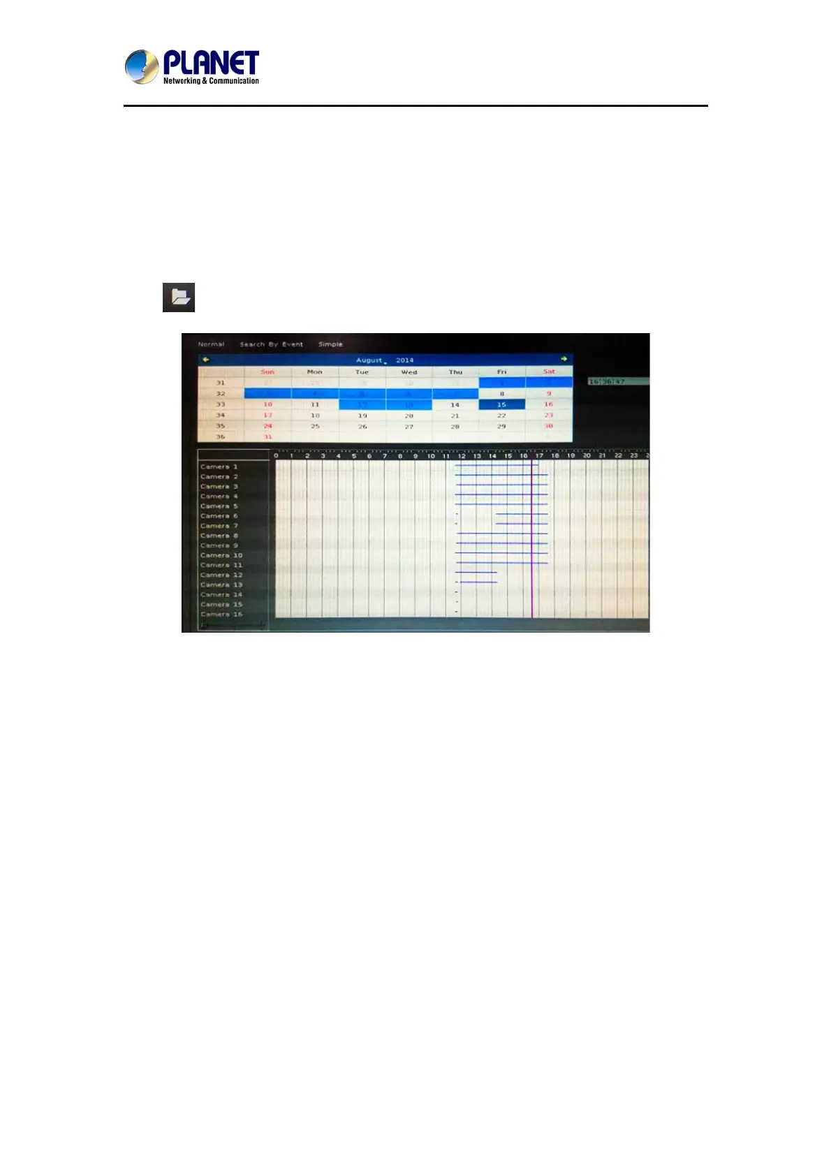 1. Select playback date: If there is record history data, system will set calendar’s day to