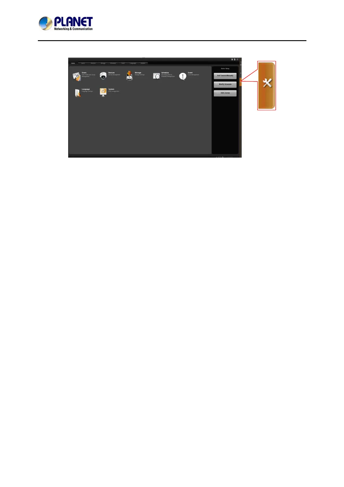 This screen allows you to perform user setup, device setup, event setup, schedule setup and