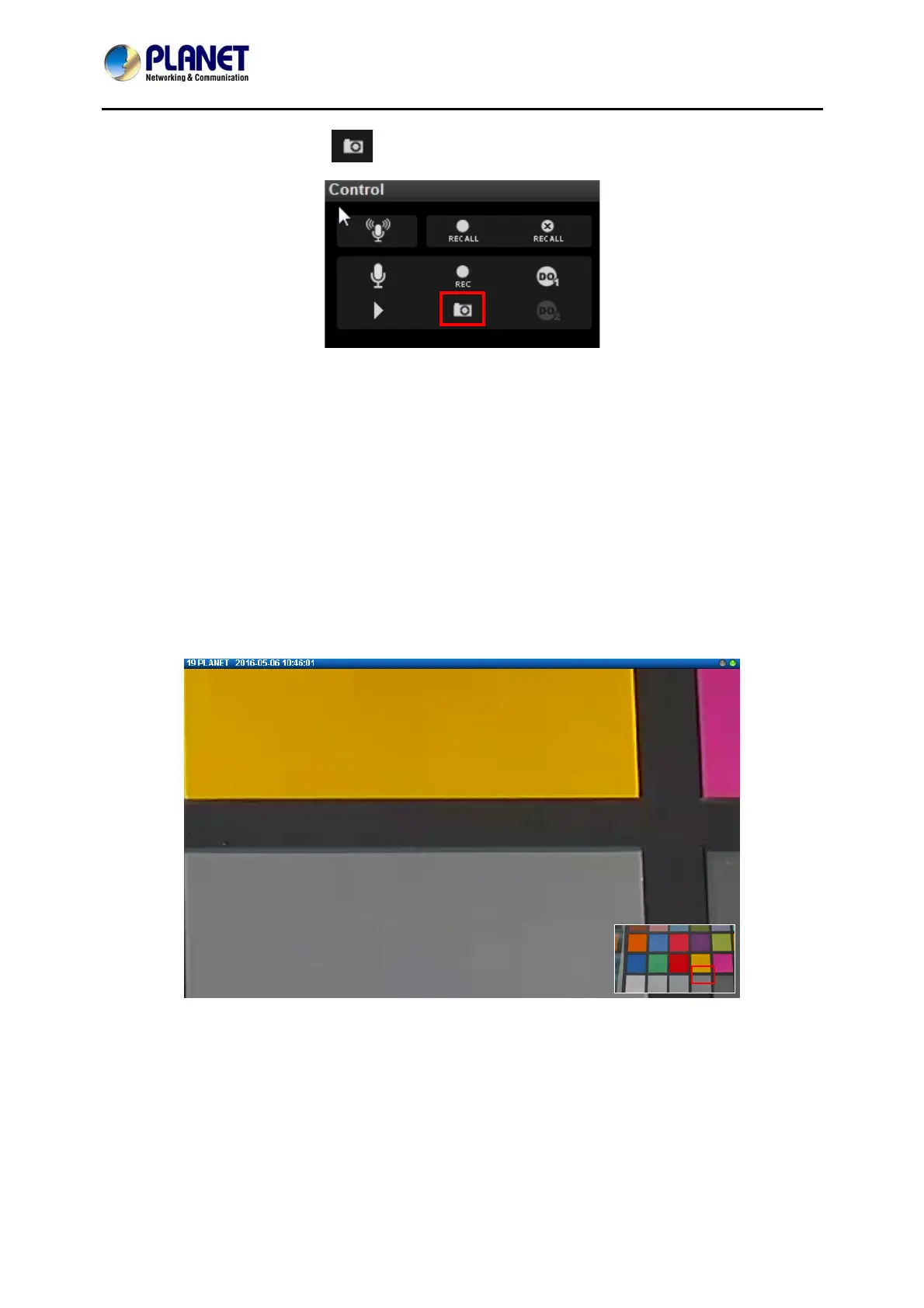 As a channel is focused, click on Live view Control panel to take a snapshot.