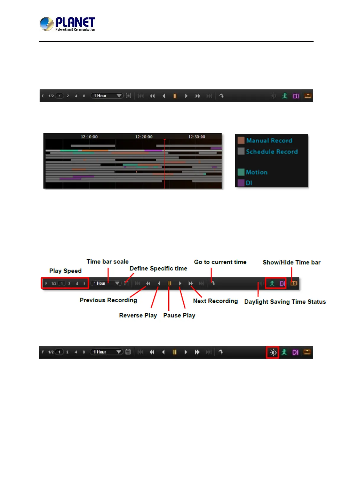 in gray on the time bar. To highlight specific events, you may enable the “Event” and “DI”