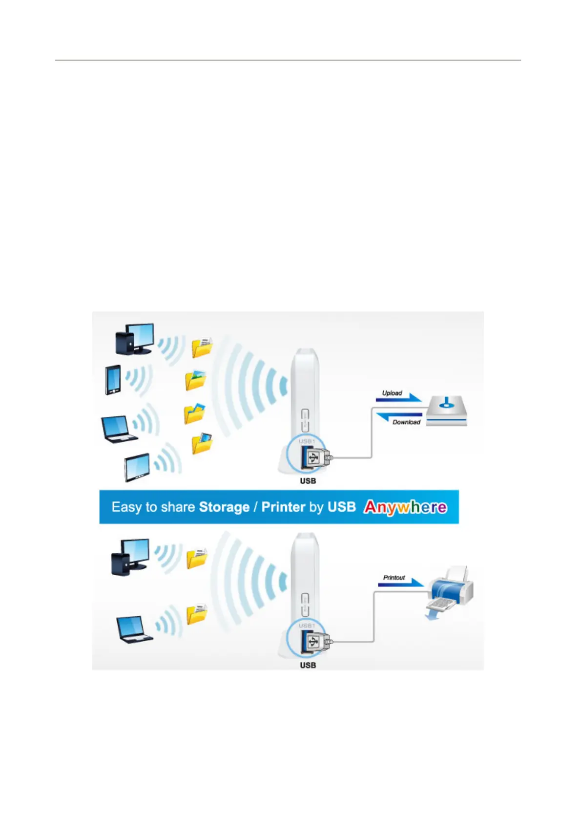 device for file sharing. It can recognize the USB printer or storage automatically without user experience.
