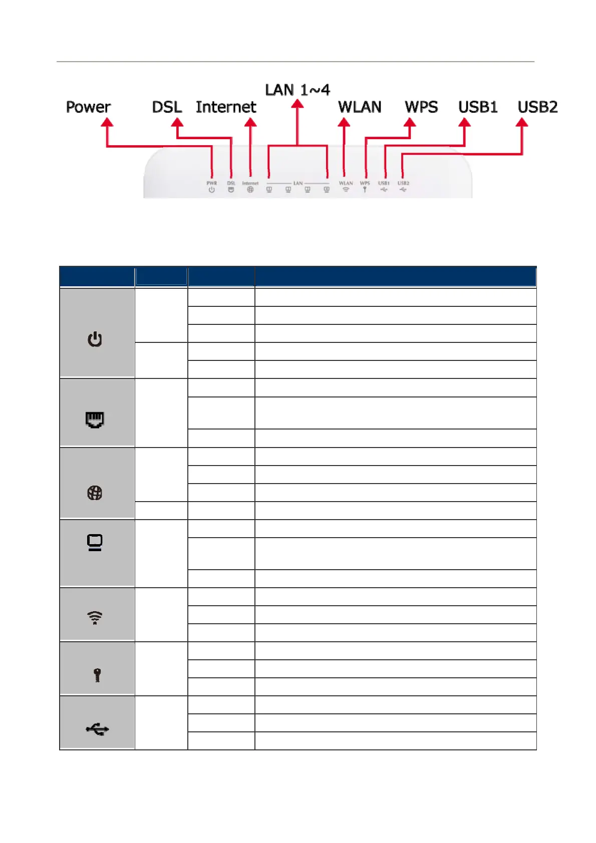 Table 2-1 The LED indication of VDR-300NU
