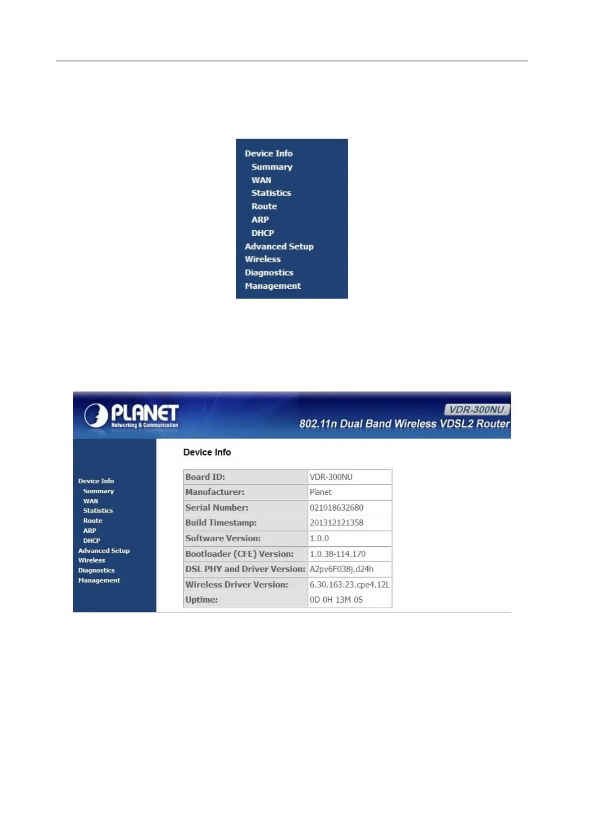 Choose Device Info, and the submenus of Device Info are shown below: