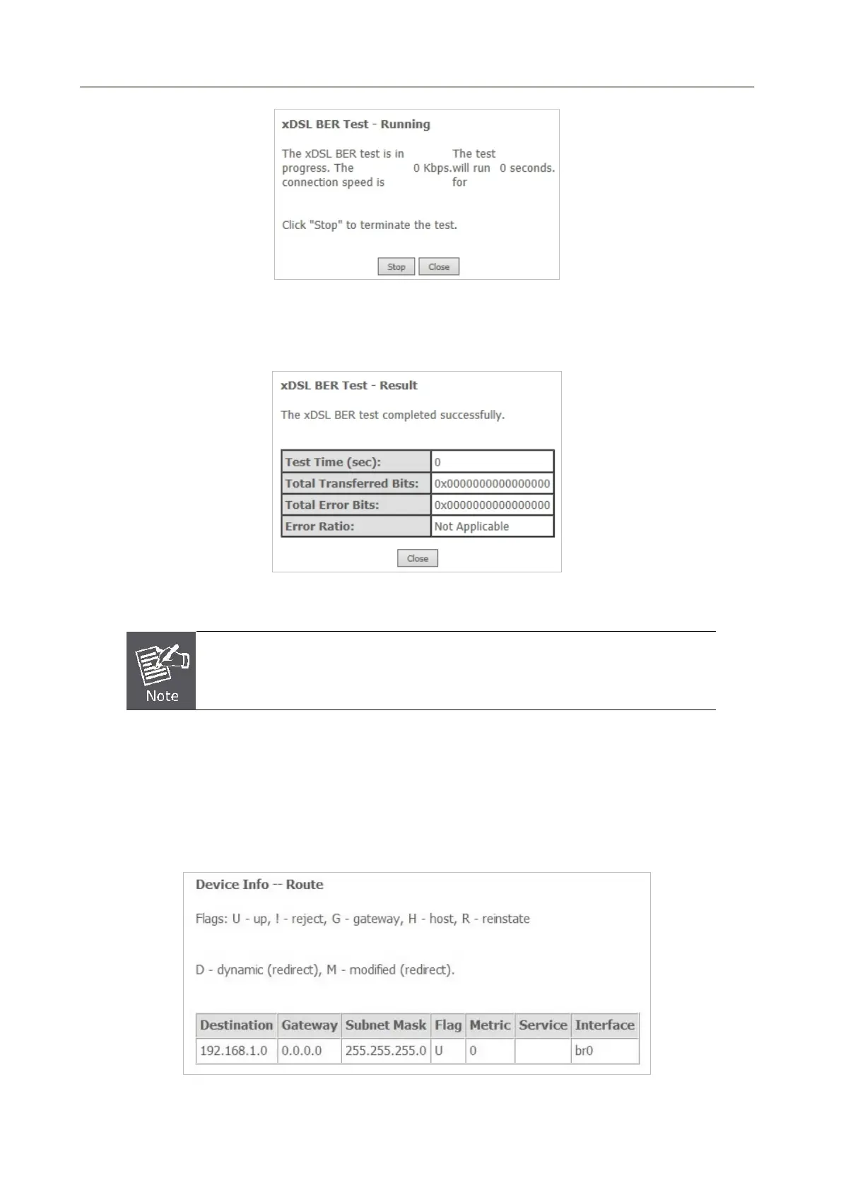 Choose Device Info > Route and the following page appears. On this page, you can view the route table