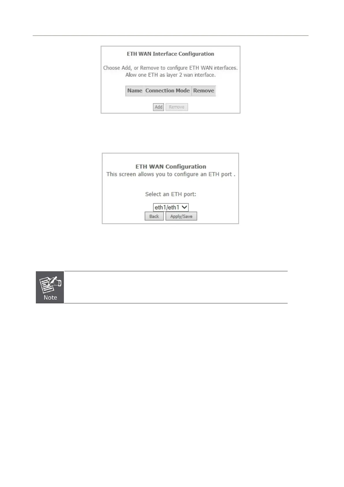 On this page, you can select an ETH port. Click Apply/Save to save configuration.