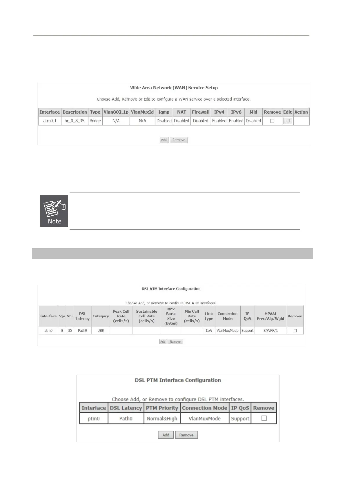 PTM WAN service are the same as the configurations of ATM WAN service.