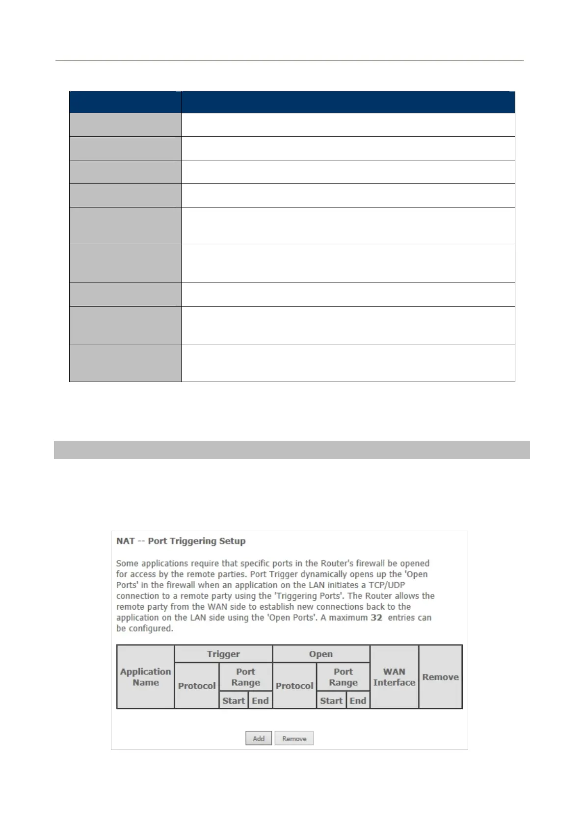 Choose Advanced Settings > NAT > Port Triggering and the following page appears.