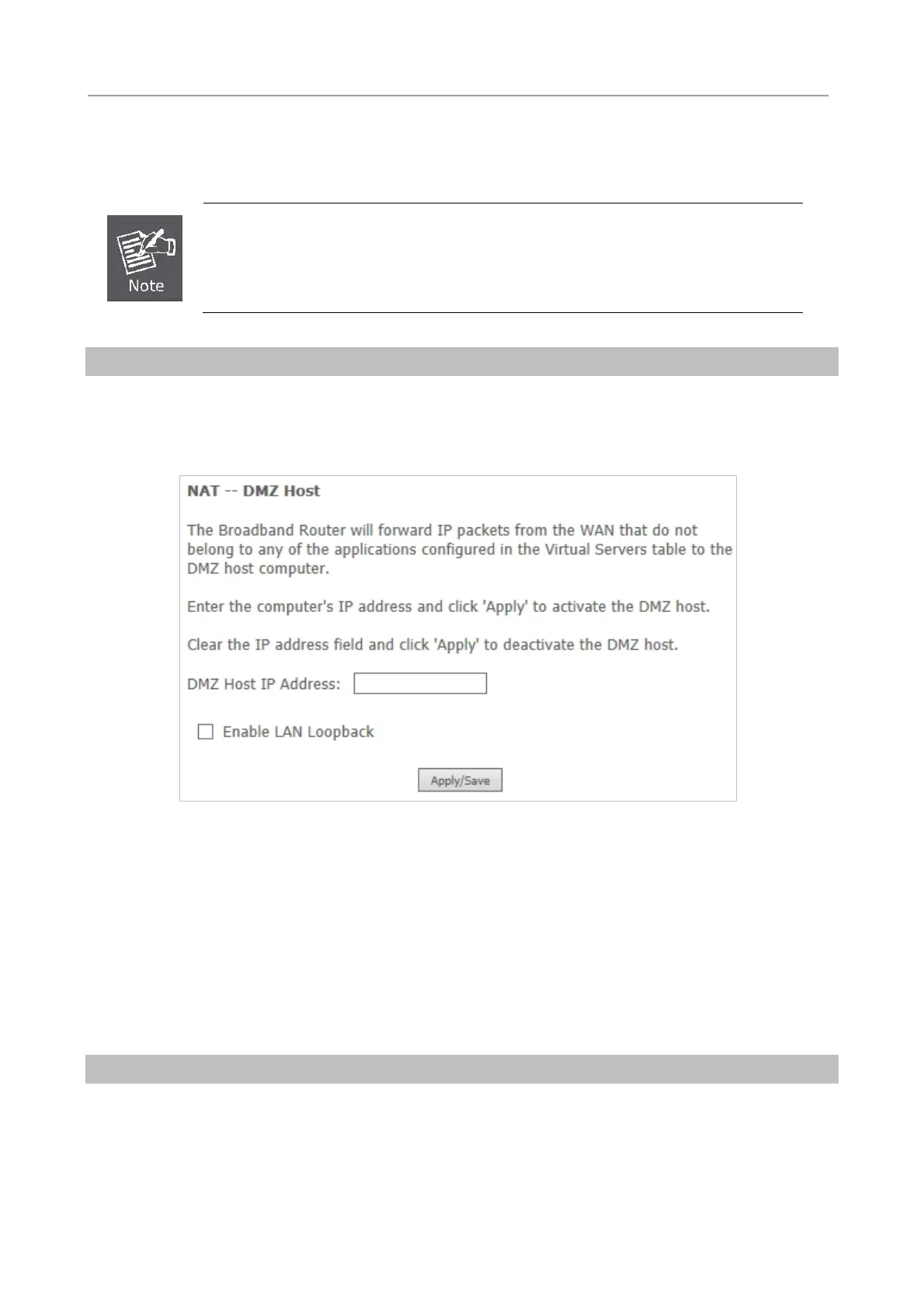 On this page, enter the IP address of the DMZ host. After finishing the settings, click the Apply/Save