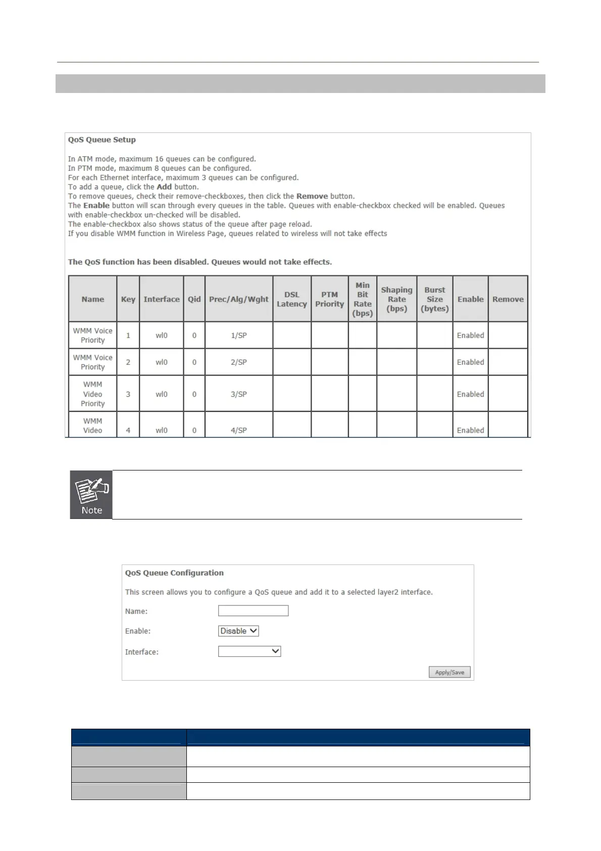 Enable Enable or disable the QoS queue.