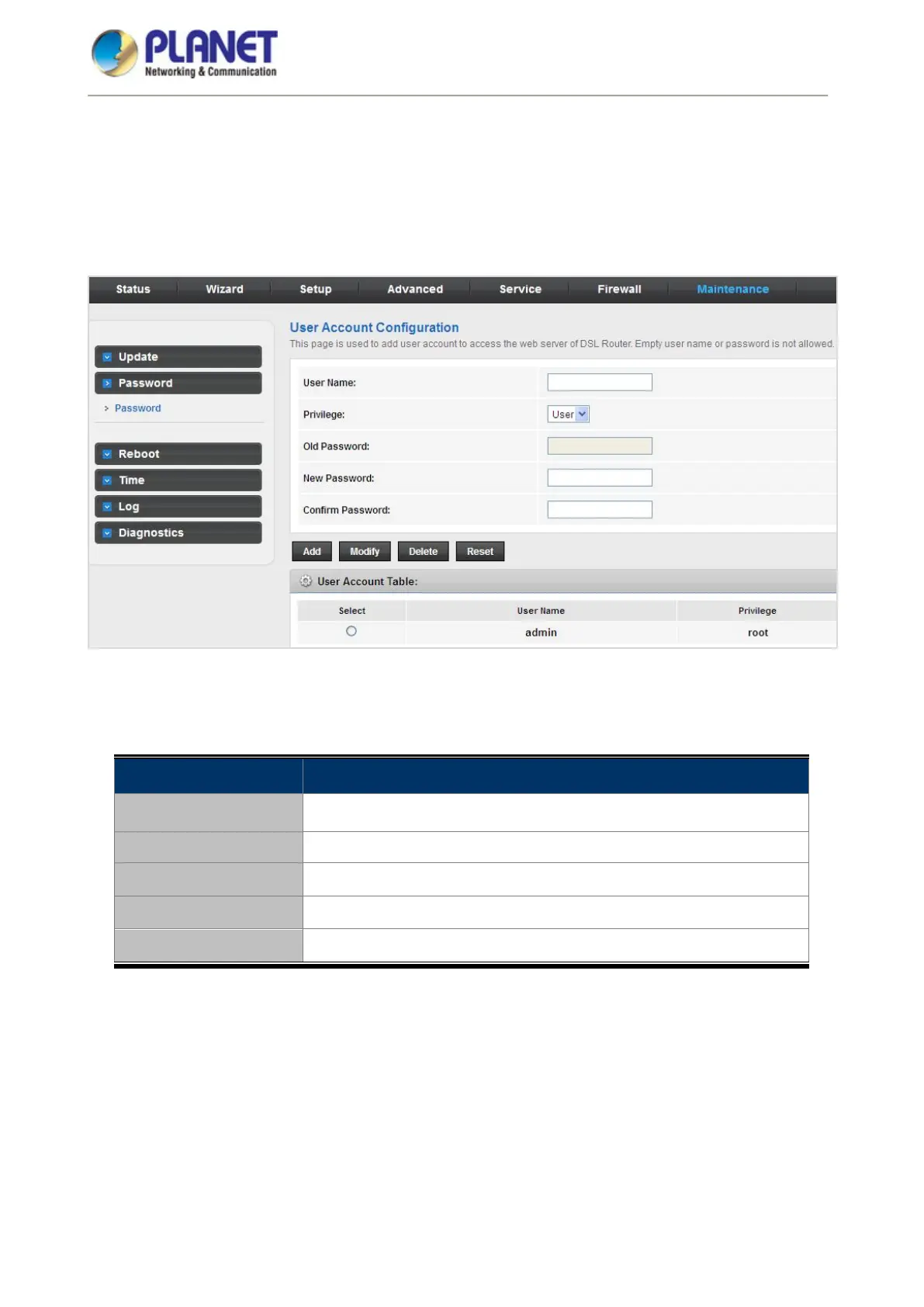 Choose Maintenance > Password and the page shown in the following figure appears. By default, the user